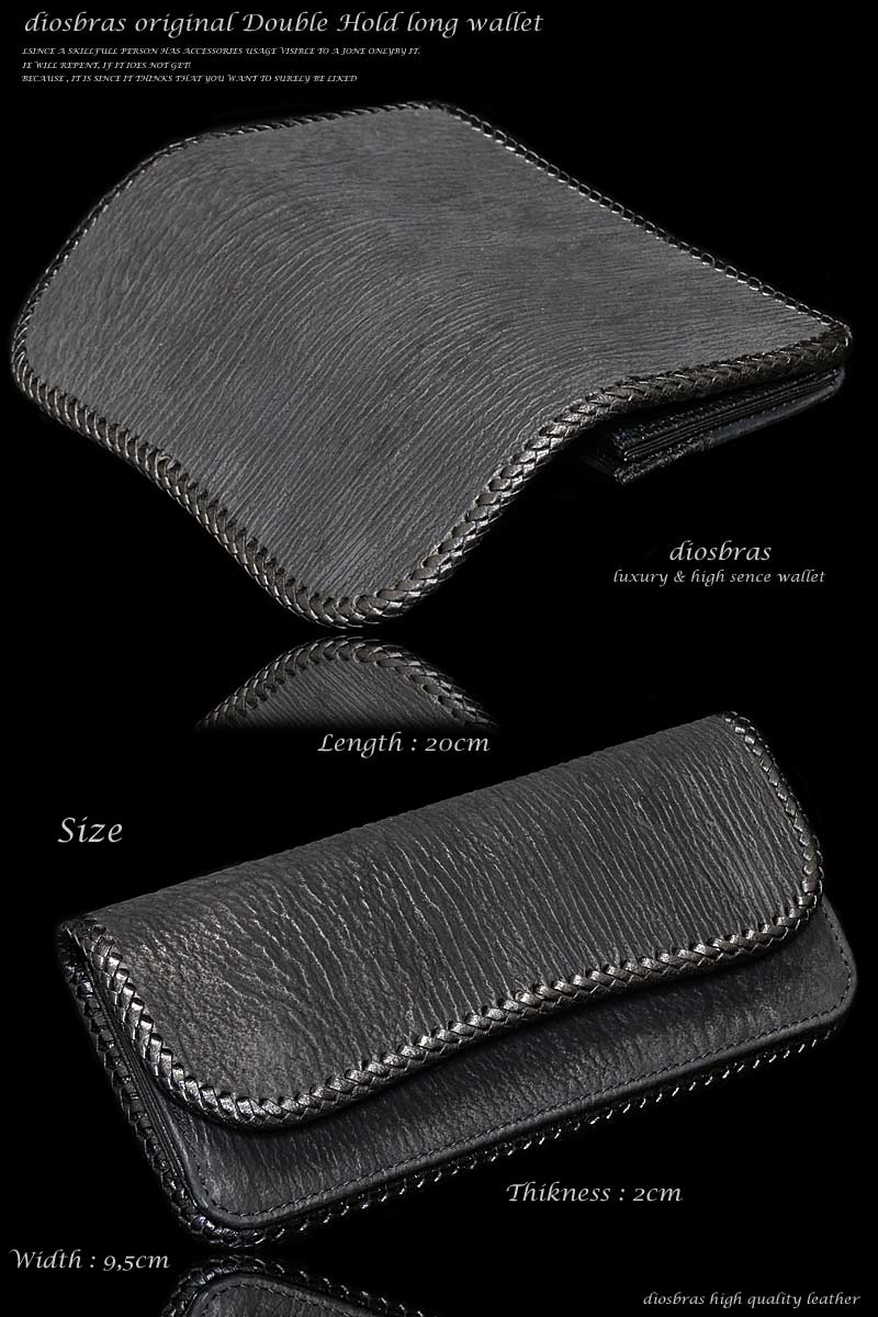 【diosbras-ディオブラス-】本革 サメ革 シャークスキン 鮫革 バイカーズウォレット 財布 レザーウォレット ロングウォレット ウォレット バイカー 長財布 牛革 シルバー925コンチョ 長財布【SS】【ブラック・黒】