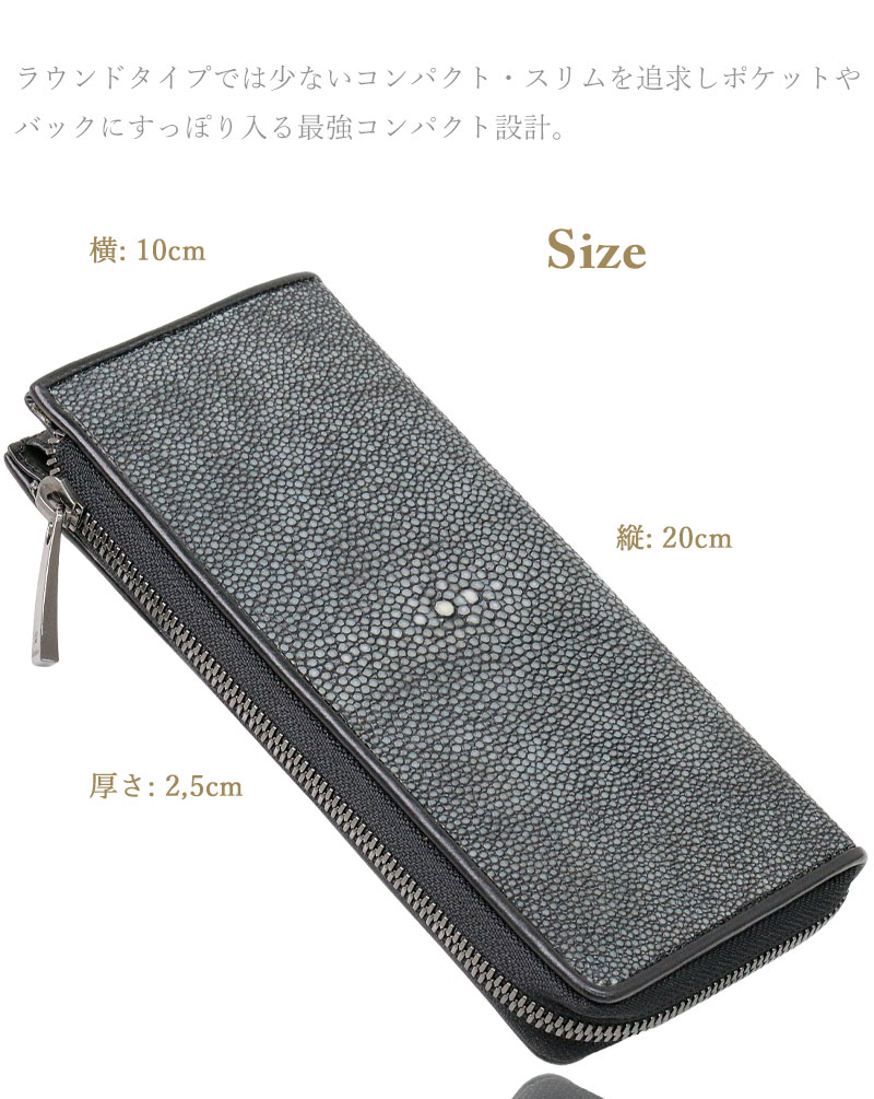 財布 スティングレイ ガルーシャ 財布 スティングレー エイ革 ラウンドファスナー メンズ レディース 本革 スティングレー ラウンド ジッパー 財布 ヌメ革 レザーウォレット ロングウォレット 長財布 牛革 紳士 婦人 マルチカラー スティングレイ [WJE-2-BK]
