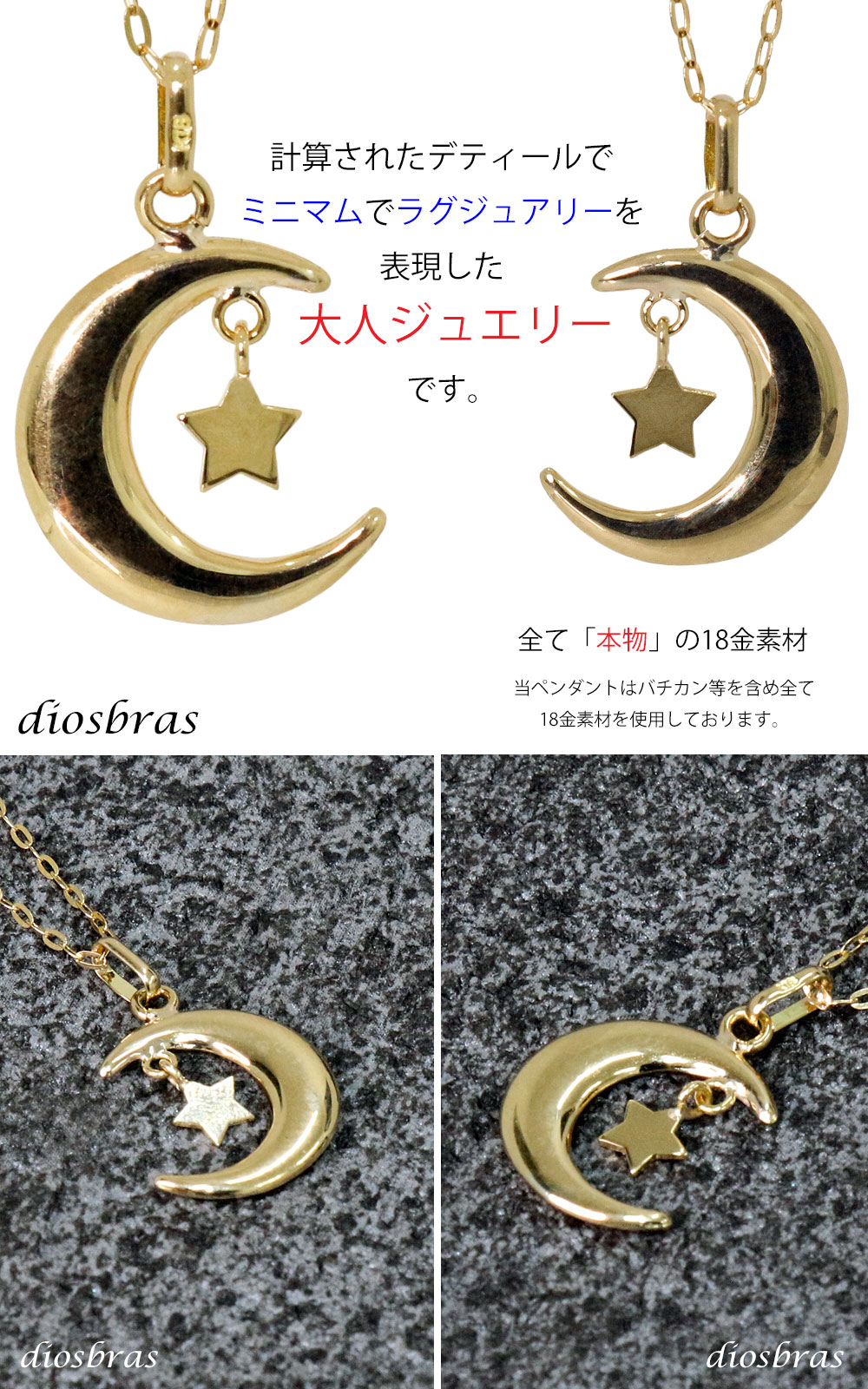 月 星 ムーン スター ペンダント k18 18金トップ シンプル ゴールド 18k メンズ レディース18金 チャーム クロス ペンダント コイン 金貨 ペンダント トップ ネックレス ネックレス チェーンセット [dp-k18-64]