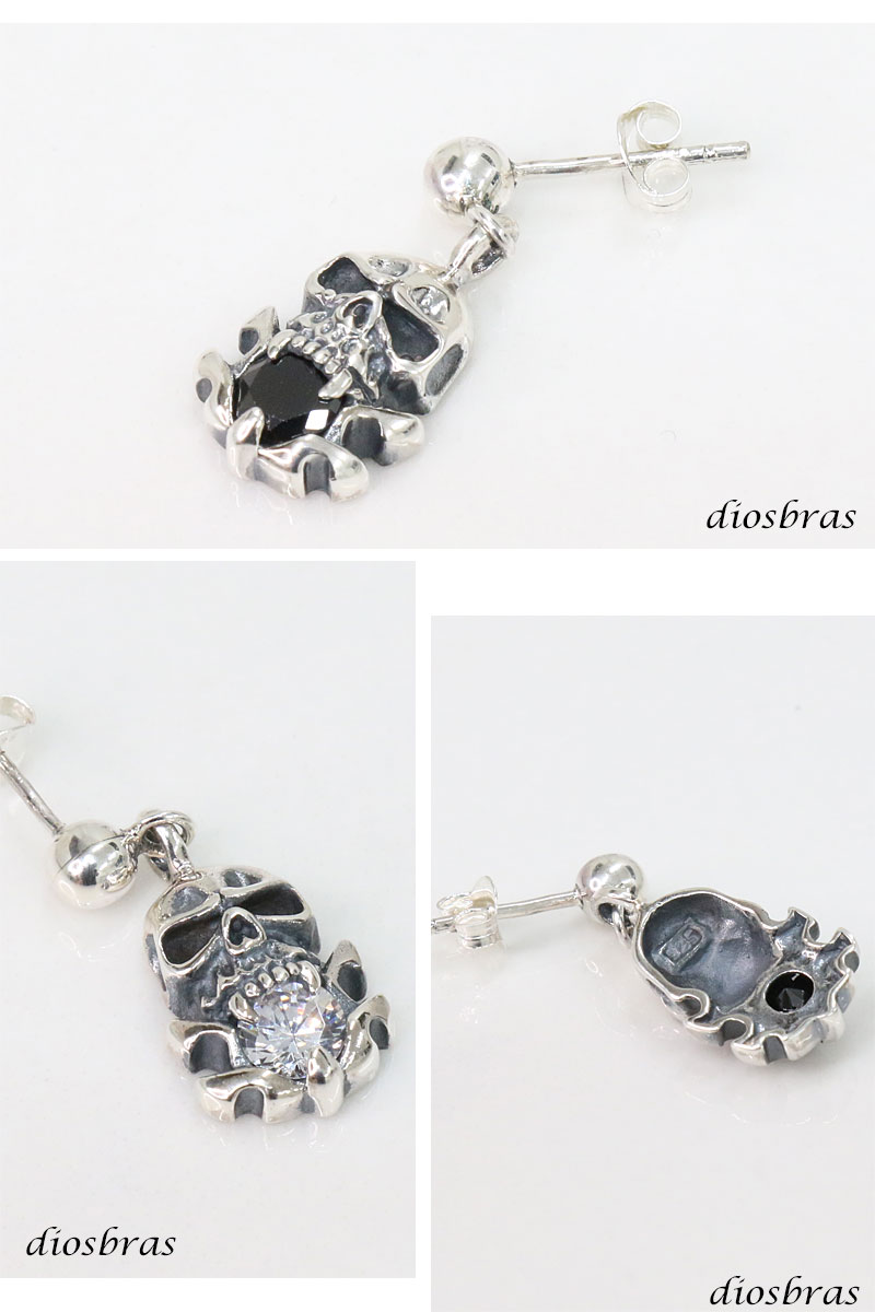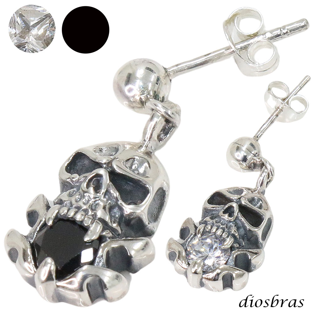 ピアス スカル ジルコニア 王冠 クラウン ドロップ ピアス アクセサリー 本物シルバー925 スカルヘッド 片方ピアス メンズ レディース [dios-pi385-noa]