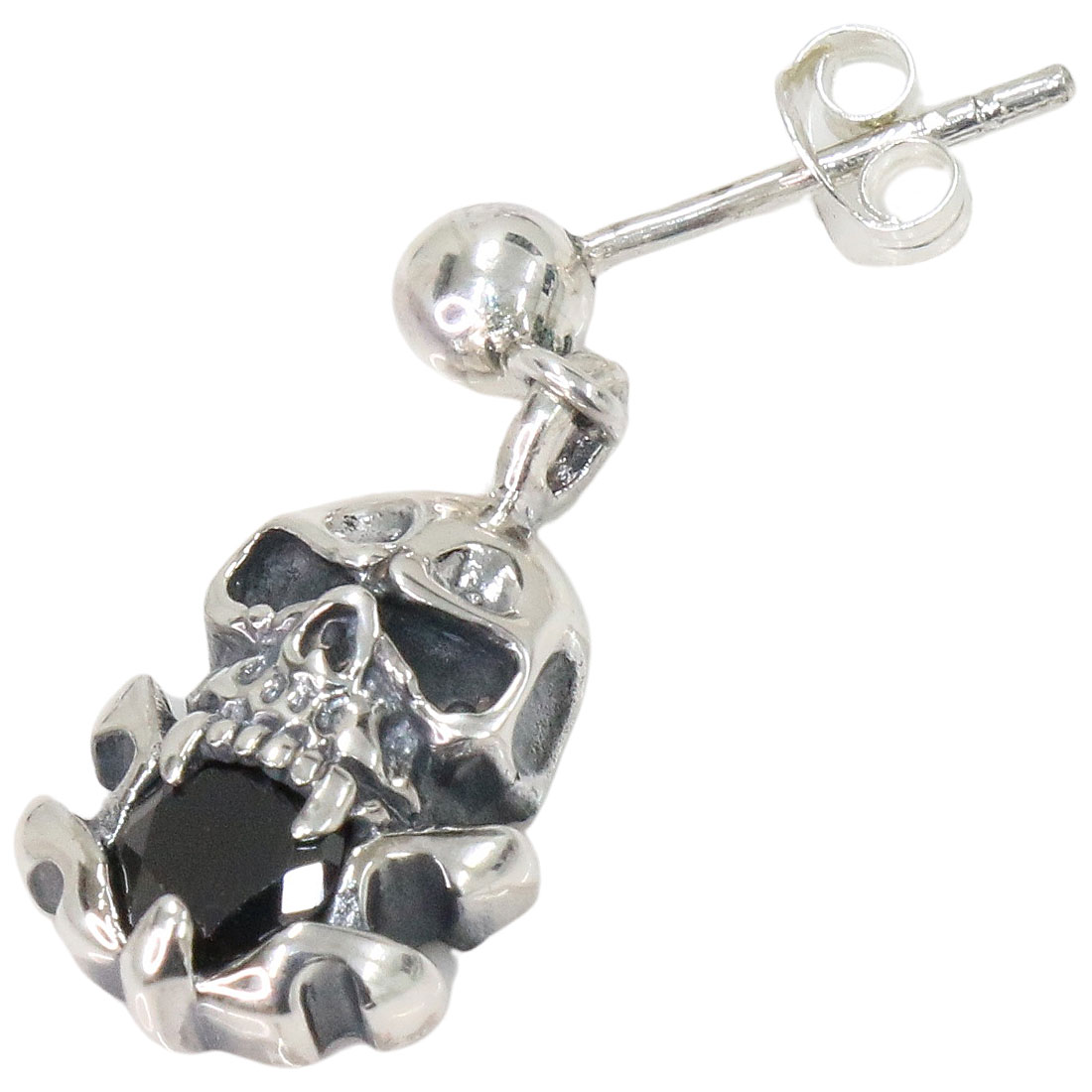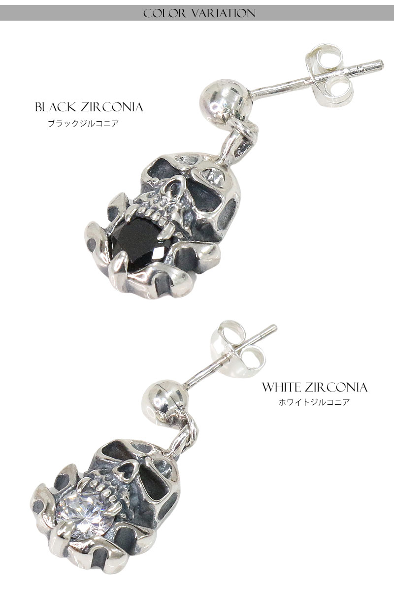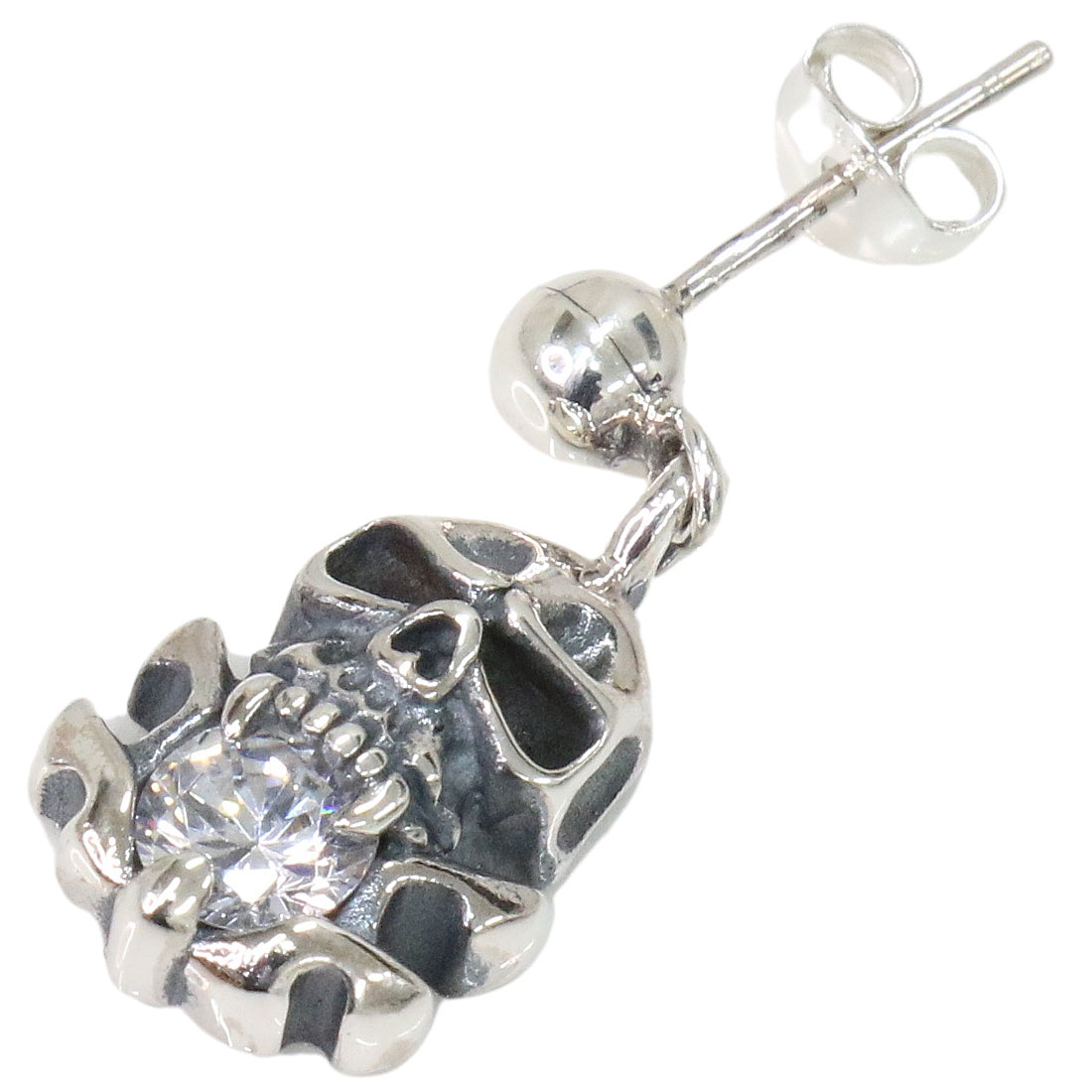 ピアス スカル ジルコニア 王冠 クラウン ドロップ ピアス アクセサリー 本物シルバー925 スカルヘッド 片方ピアス メンズ レディース