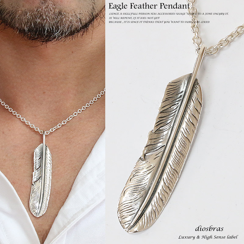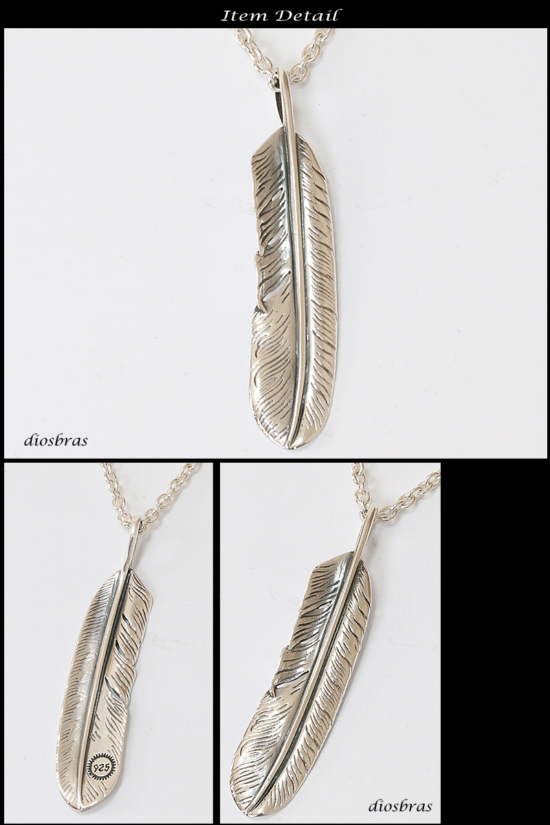 シルバー925素材 フェザー トップ フェザーネックレス ハンドメイドネックレス インディアンジュエリー ネイティブ シルバー925ペンダント フェザー イーグル パーツ ネックレス メンズ レディース 深堀り仕上げ メール便なら送料無料 [dp-8]