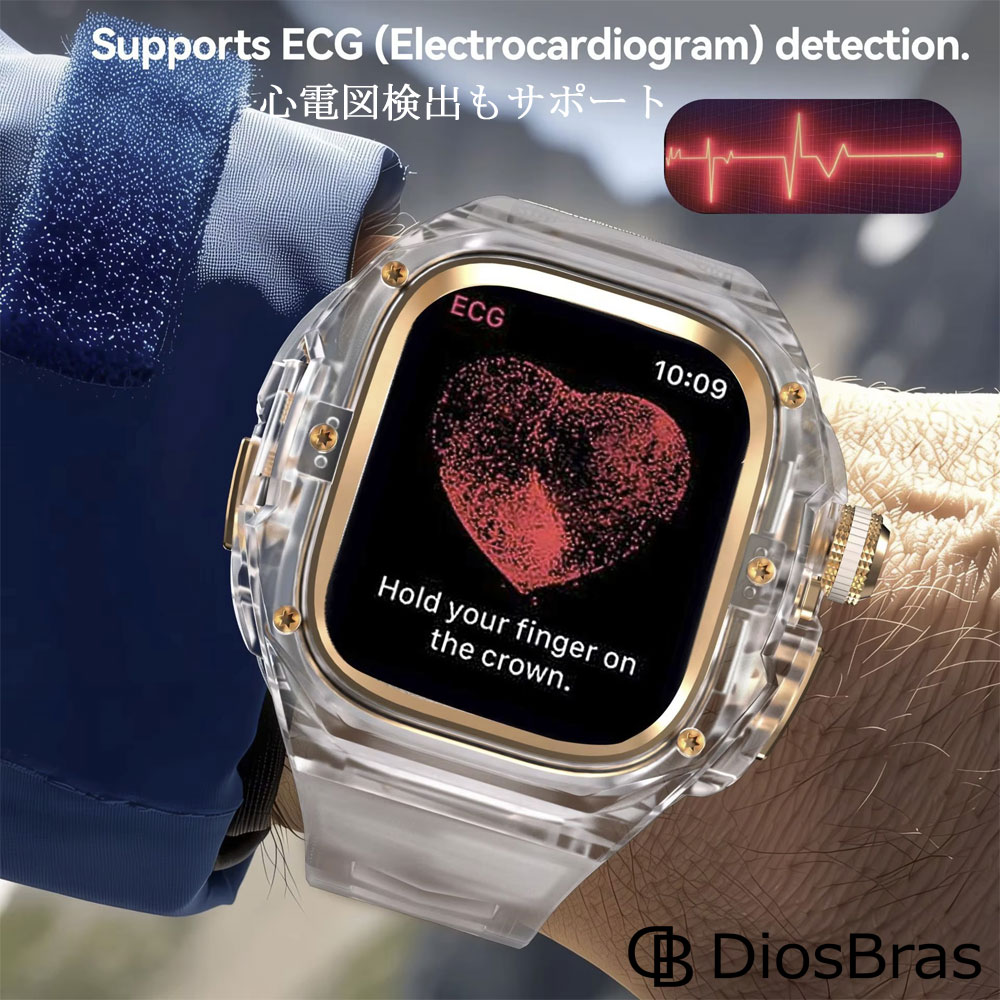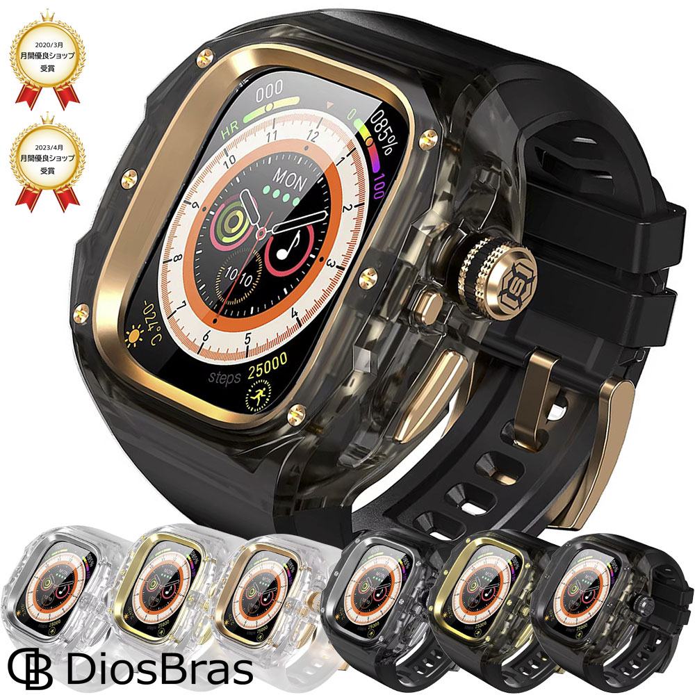 【1年保証】【新型】アップルウォッチ ウルトラ ULTRA3/2/1 49mm バンド クリア 透明 ポリカーボネート ボタン開閉 ステンレス ケース カバー 一体型 バンド ラバー apple watch 高級ベルト ケースバンド メンズ ベルト 49mm 一体型 Series4/5/6/7/8/9/SE