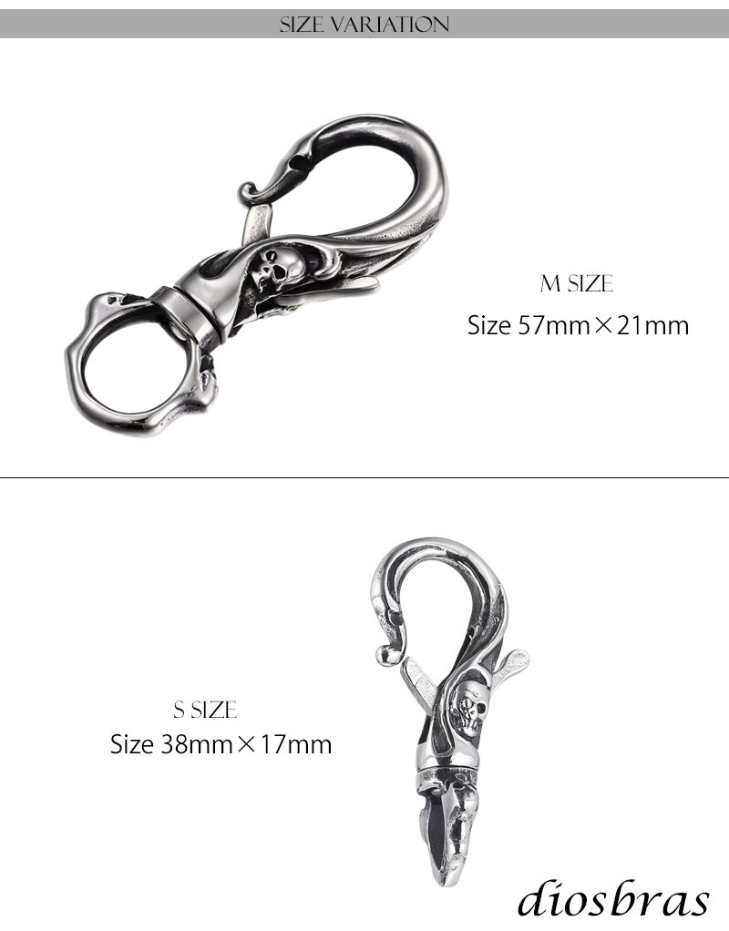 キーホルダー キーフック キーチェーン カラビナ ナスカン カスタム シルバー スカル ドクロ 骸骨 髑髏 ステンレス製 キーホルダー