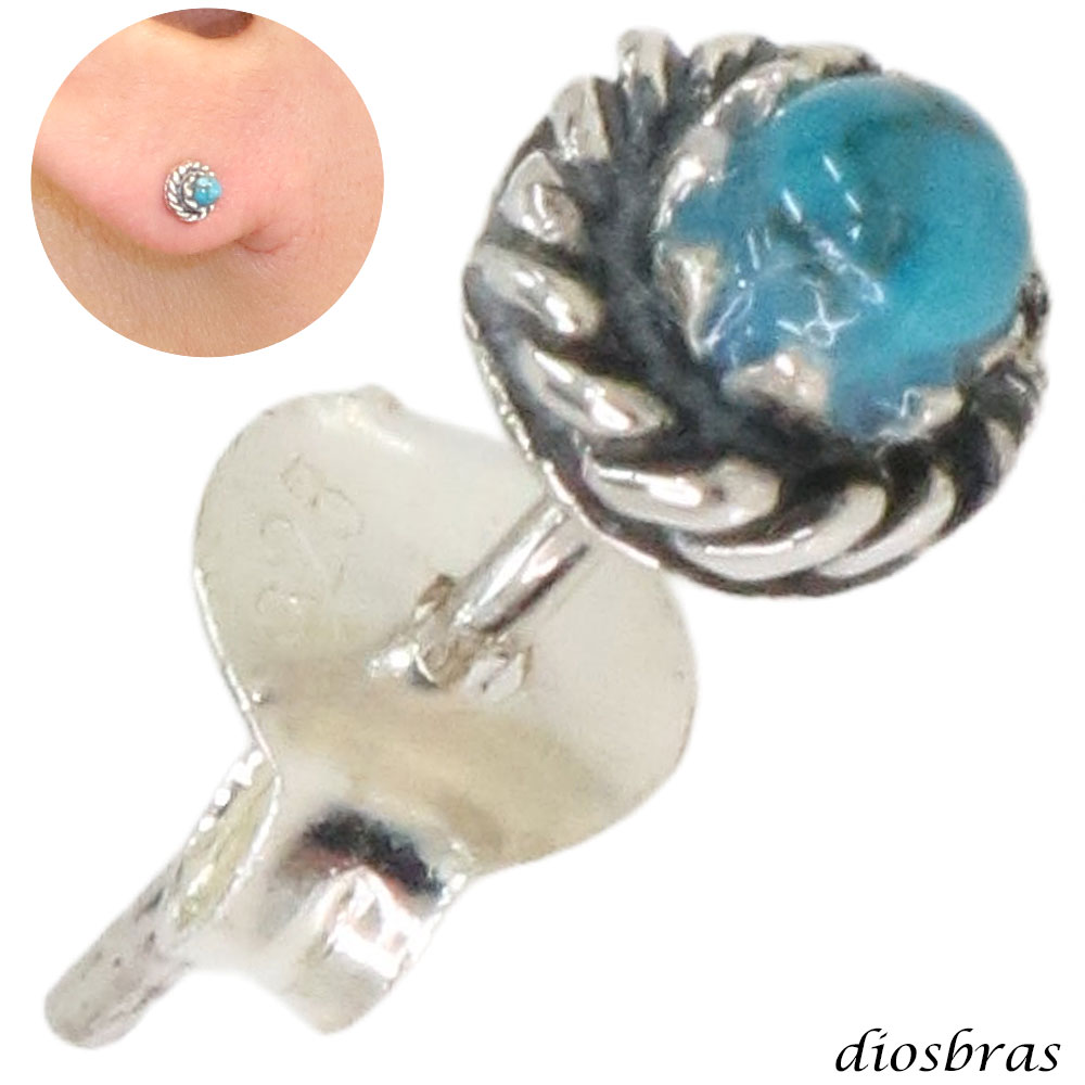 ターコイズ ピアス 本物シルバー925 片方 トルコ石 ワンポイント インディアンジュエリー ネイティブアメリカン ナバホ パワーストーン ピアス片耳 片方販売ピアス メンズ レディース メール便なら送料無料 [dios-pi394-noa]