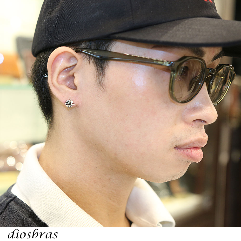 シルバー925 クロス 十字架 ブラック ジルコニア 太陽神 サンマーク 片方ピアス メンズ レディース ブリリアンカット 多角カッティング 極小クロス [dios-pi398-ng]
