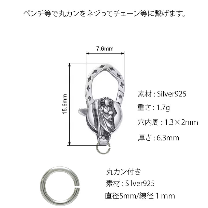 チェーン フック シルバー925 マリア メダイ キリスト マリア様 スター 星 クリスチャン カスタムパーツ ロブスター クラスプ ロック 両面デザイン