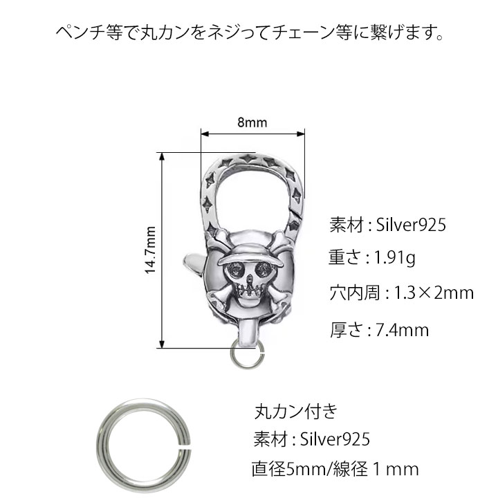 チェーン フック シルバー925 スカル ボーン 骸骨 クリスチャン カスタムパーツ ロブスター クラスプ ロック 両面デザイン