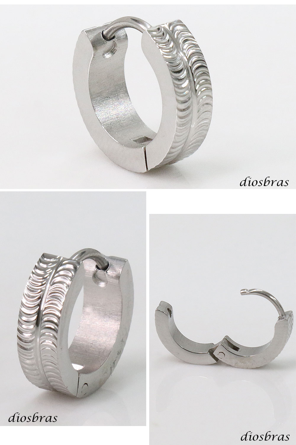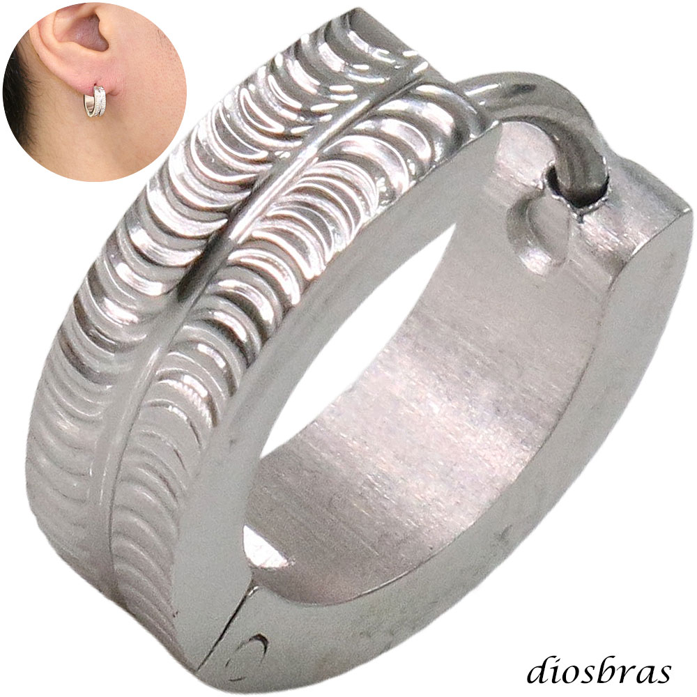 ステンレス フープピアス 彫刻デザイン シルバー 金属アレルギー対応 メタル素材 シンプル 小さめ フープ リング 輪っか ピアス メンズ アクセサリー レディース 中折れ式 13mm [dios-pi424-gt]
