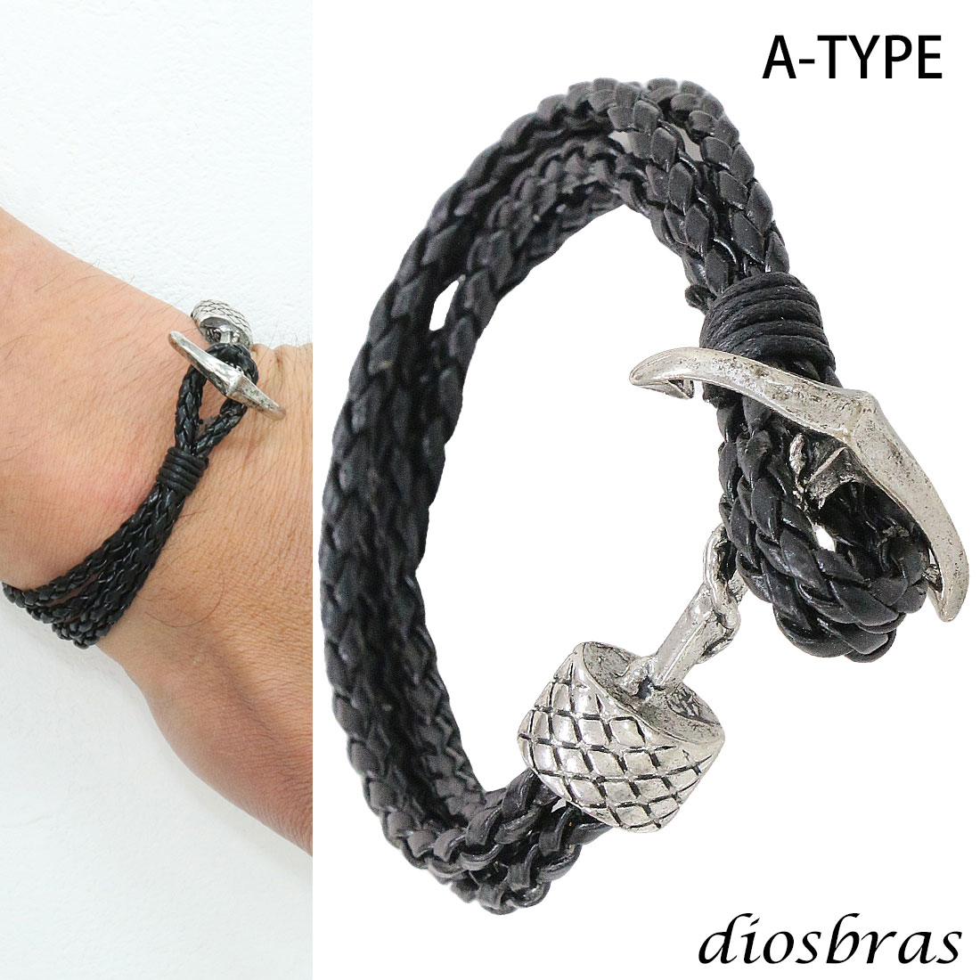 ブレスレット メンズ レザー ブレス 十字架 アンカー クロス プレート インフィニティ 無限 選べる♪全4種類 本革 革 バングル レザーブレスレット レザーブレス アメカジ系 サロン系 キレカジ系 に♪ ピューター製 メール便なら送料無料