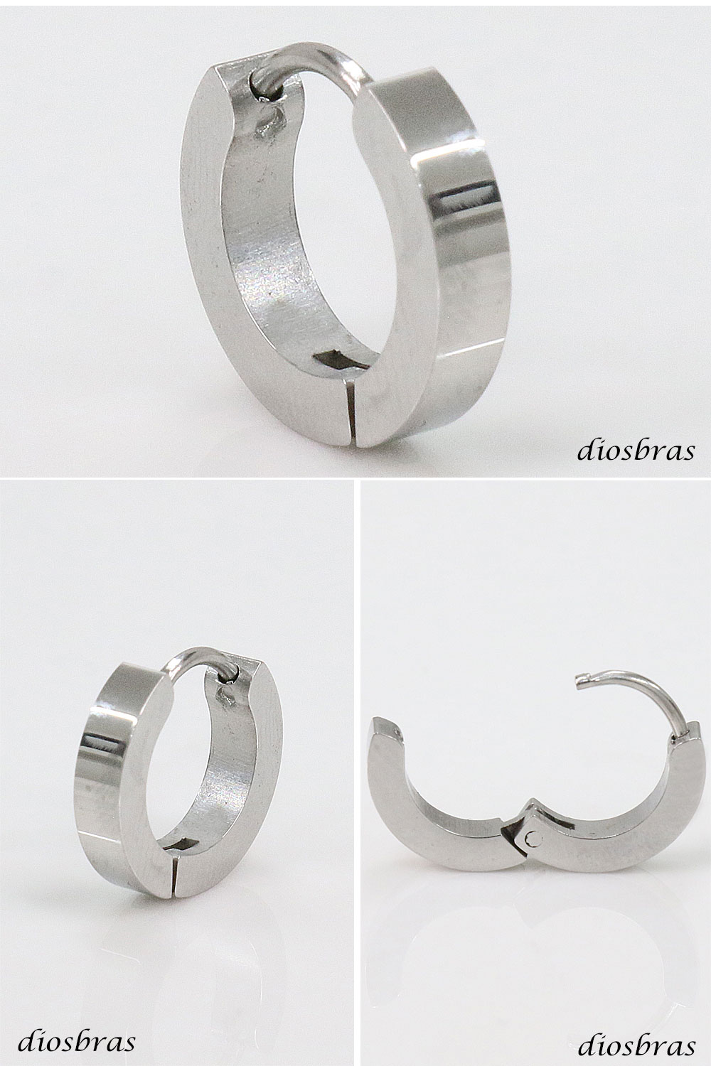 ステンレス フープピアス シルバー 金属アレルギー対応 メタル素材 プレーン シンプル 小さめ フープ ループ リング 輪っか ピアス メンズ アクセサリー レディース 中折れ式 13mm [dios-pi426-gt]