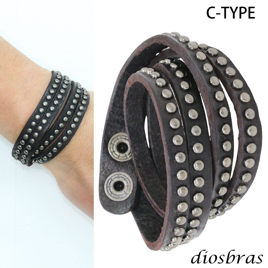 ブレスレット メンズ レザー ブレス スタッズ 3重 2重 2連ブレス クロス プレート インフィニティ 無限 選べる♪全5種類 本革 革 バングル レザーブレスレット レザーブレス アメカジ系 サロン系 キレカジ系 に♪ ピューター製 メール便なら送料無料