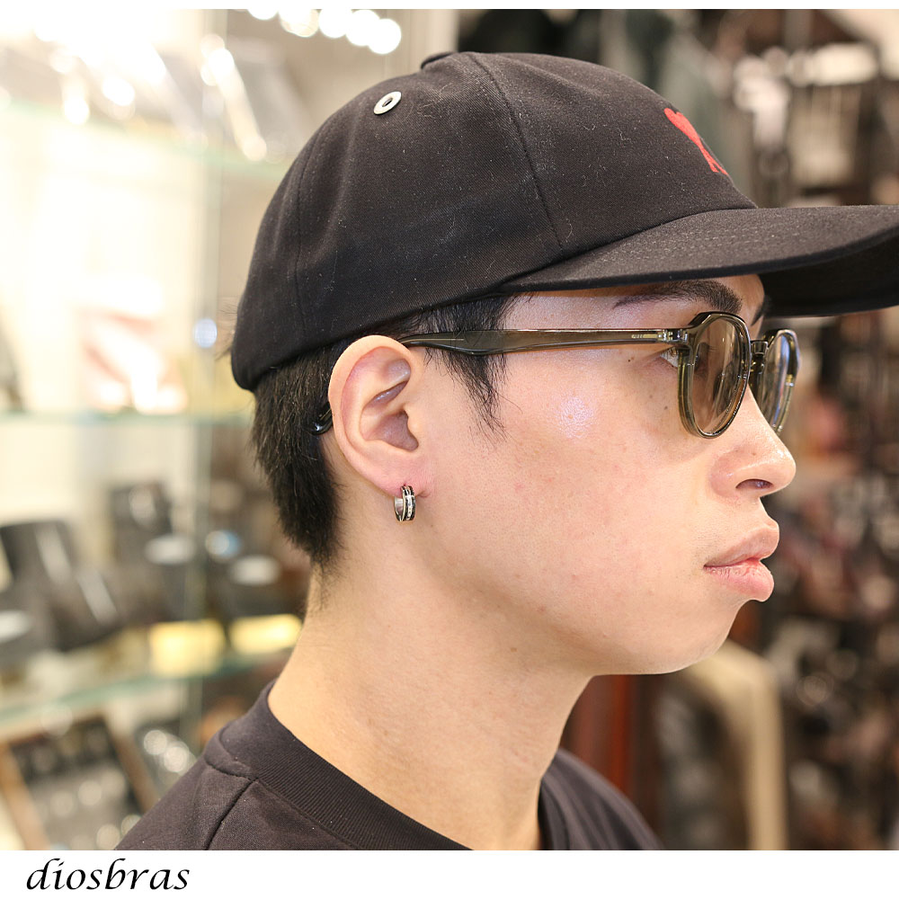 フープピアスのセンター部分から中折れするワンタッチタイプのピアスなので、 ピアス初心者でも簡単に着脱出来るピアスです。