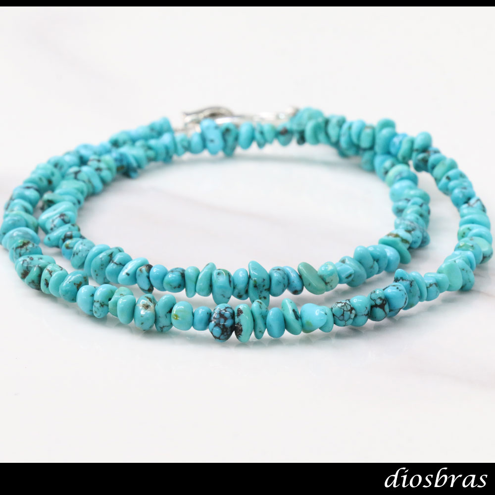 天然ターコイズの色合いと存在感を生かせるよう平面カットを連ね、留め具に馬蹄フックパーツを配し組み合わせた最強ネックレスです。