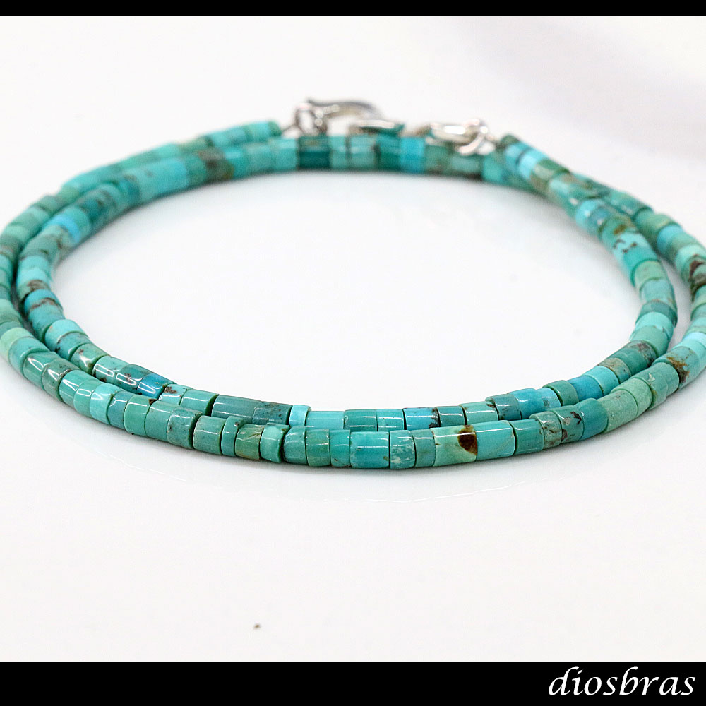 天然ターコイズの色合いと存在感を生かせるよう平面カットを連ね、留め具に馬蹄フックパーツを配し組み合わせた最強ネックレスです。