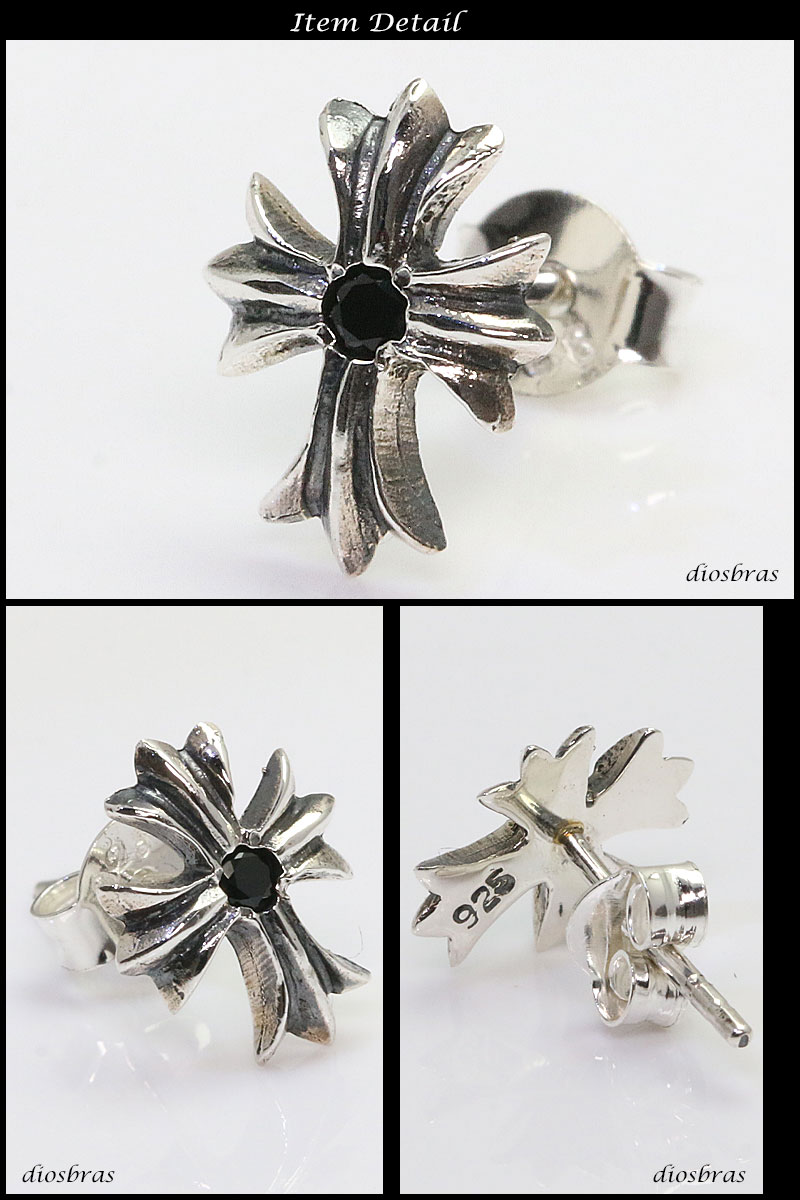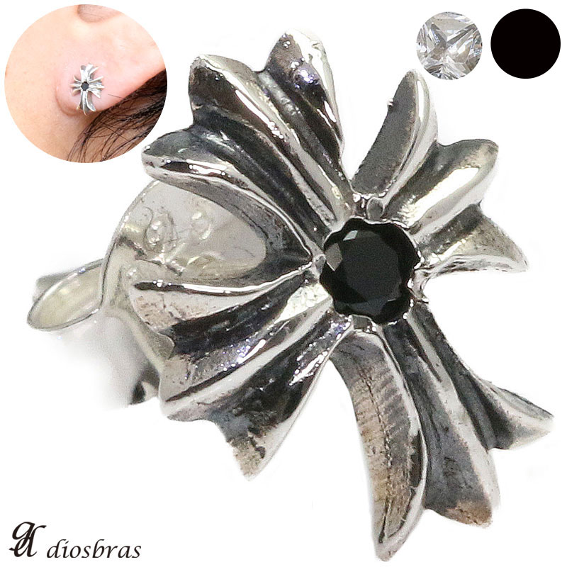 シルバー925 クロス 十字架 ブラック ジルコニア 片方ピアス メンズ レディース ブリリアンカット 多角カッティング シルバー925 極小クロス ジルコニア [dios-pi337-rivr]