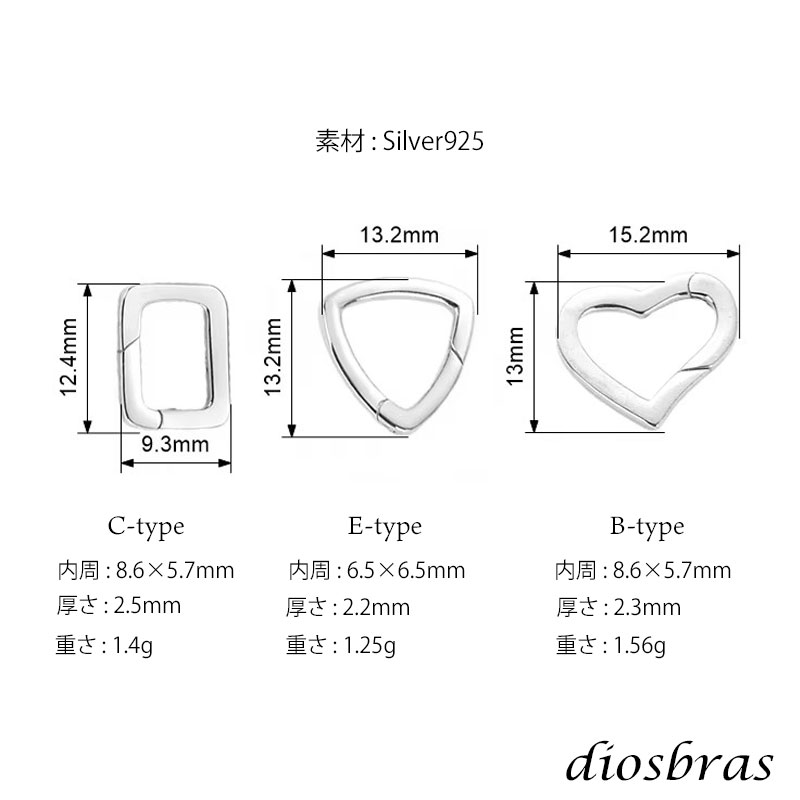 キーリング キーホルダー ファニー カラビナ 丸カン ハート 三角 トライアングル 楕円 スクエア 四角 丸型 カラビナ サークル マルカン1個売り 極太ビーズ シルバー シルバー925 ビーズ アクセサリー ハンドメイド パーツ 線径2 5mm 直径17mm×9mm スターリングシルバー [dios-pt19-ch]