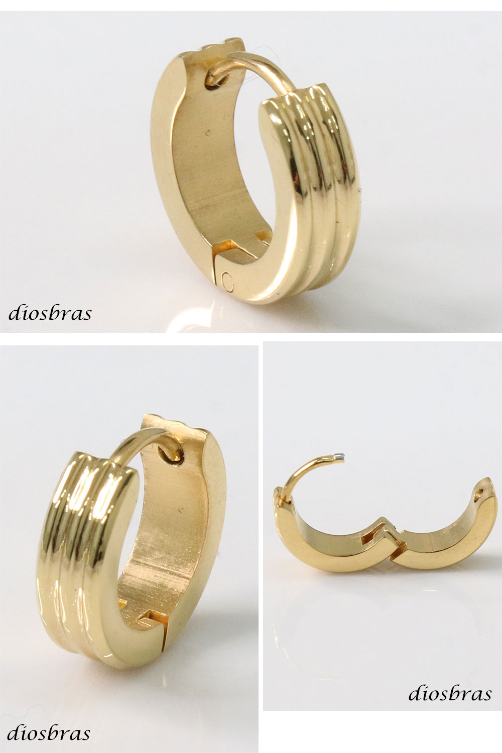 ステンレス フープピアス ゴールド ライン 金属アレルギー対応 メタル素材 シンプル 小さめ フープ ループ リング 輪っか ピアス ゴールド メンズ アクセサリー レディース 中折れ式 13mm [dios-pi432-gt]