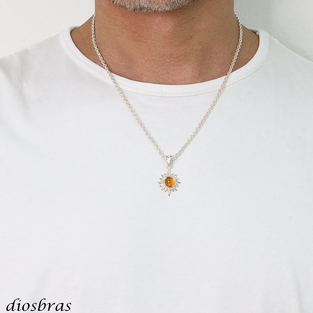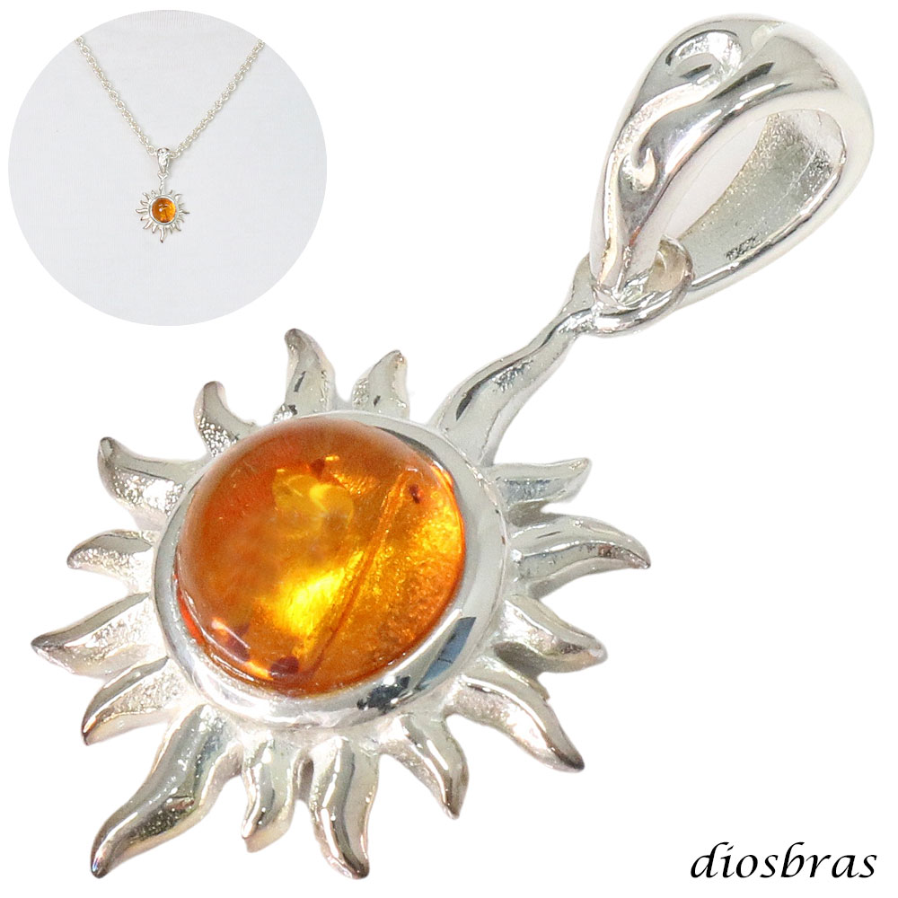 アンバー 琥珀 ペンダント太陽 サンマーク ドロップ ペンダント トップ 存在感のある琥珀ペンダント ナバホ パワーストーン インディアンジュエリー シルバー925 フェザーネックレス ネックレス メンズ レディース [dp-620-amb]