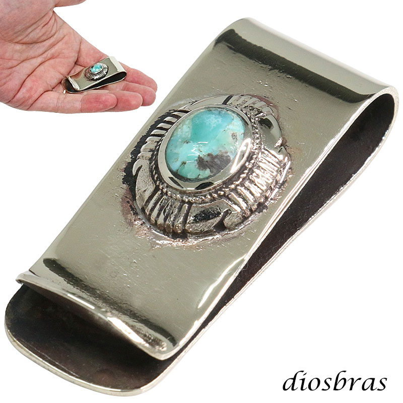 マネークリップ ターコイズ ナバホ プレーン 金 マネークリップ 財布 シンプル ジュエリー ウォレット マネークリップ メンズ レディース 男女兼用 メダル シルバー925 真鍮製 メール便送料無料