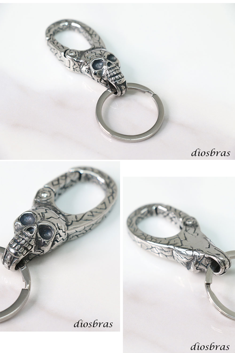 キーホルダー キーフック キーチェーン シルバー スカル ドクロ 骸骨 髑髏 亜鉛合金製 キーホルダー