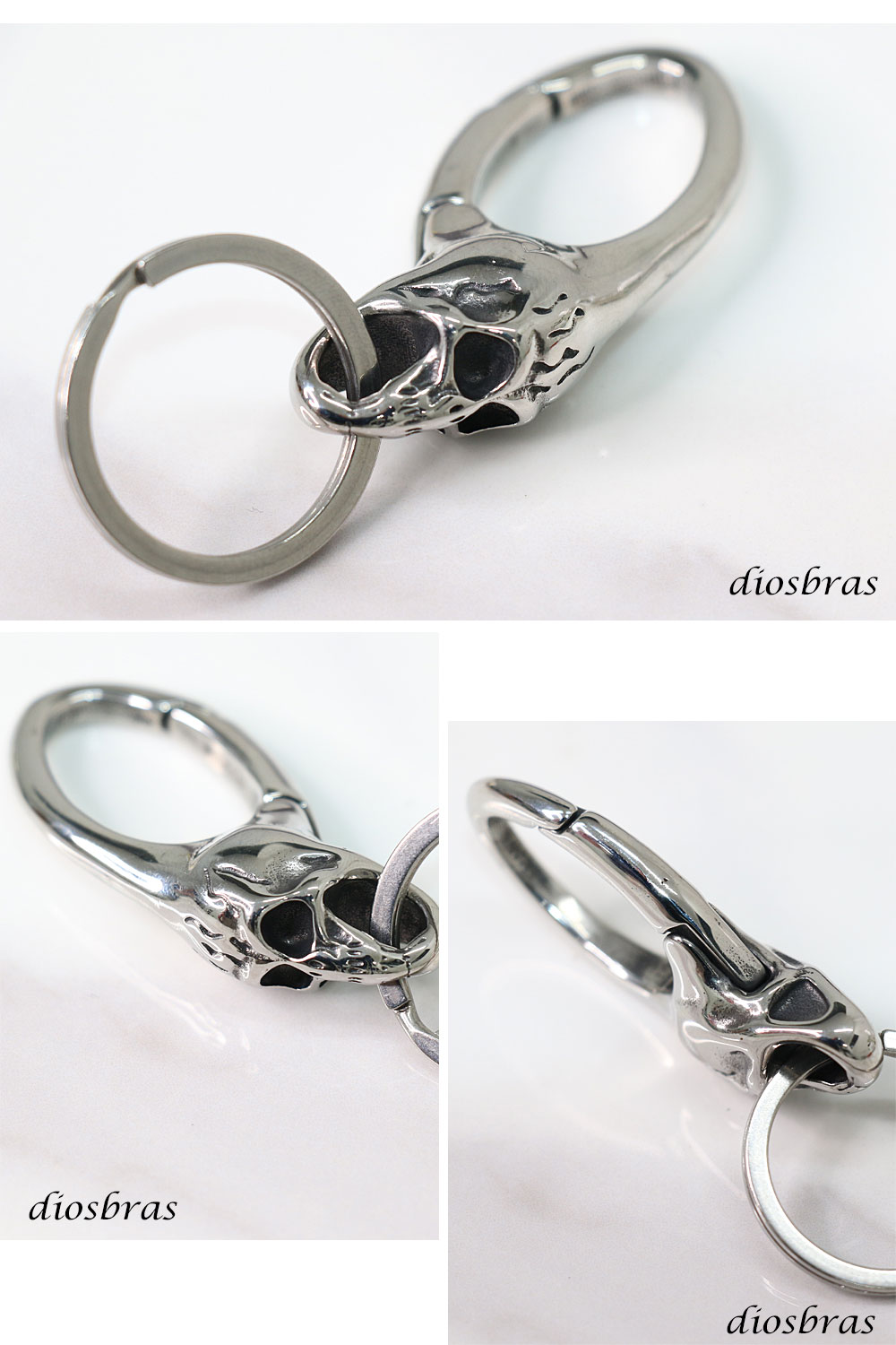 キーホルダー キーフック キーチェーン シルバー スカル ドクロ 骸骨 髑髏 亜鉛合金製 キーホルダー [BKF-83-CH]