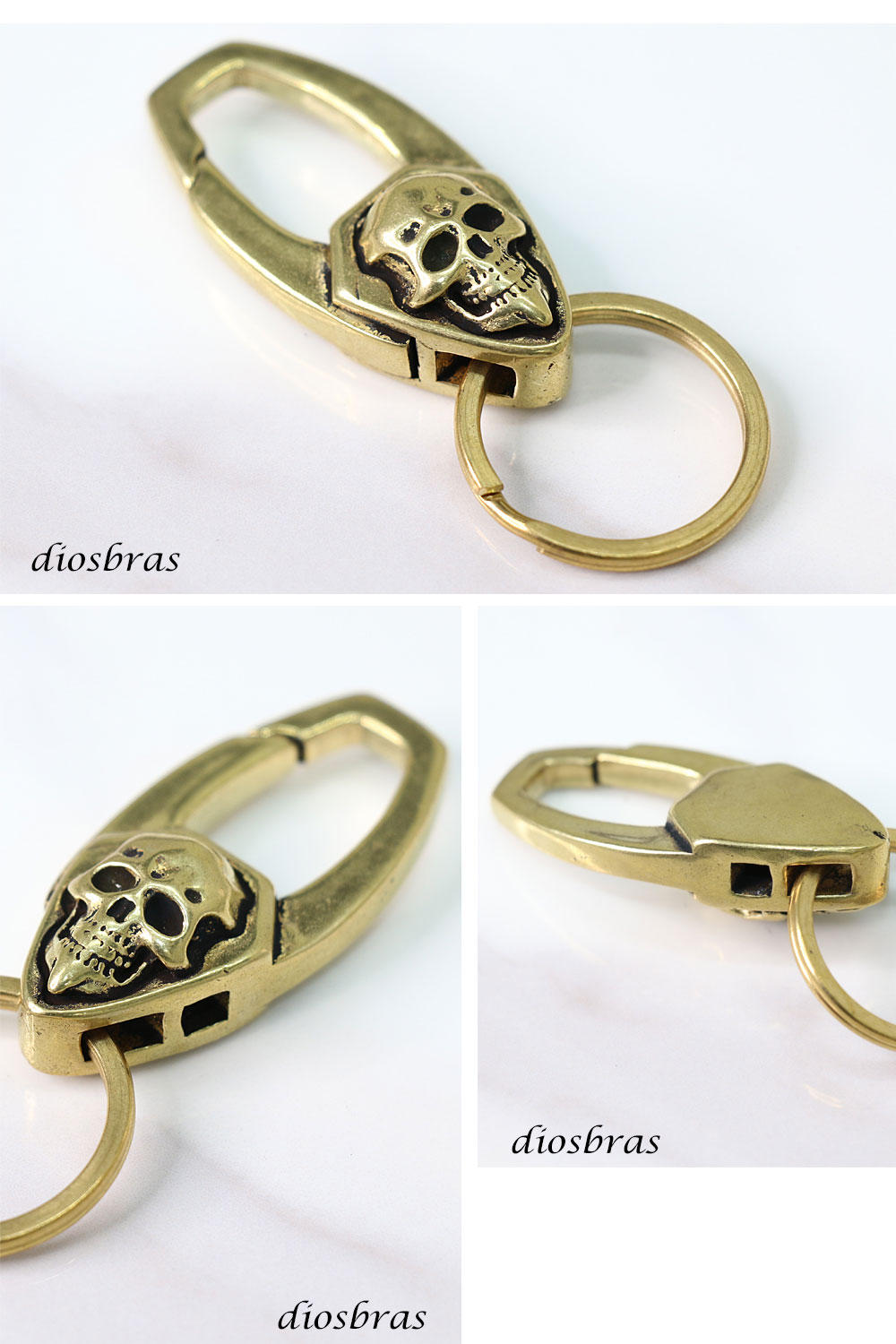 キーホルダー キーフック キーチェーン ゴールド スカル ドクロ 骸骨 髑髏 真鍮 ブラス キーホルダー