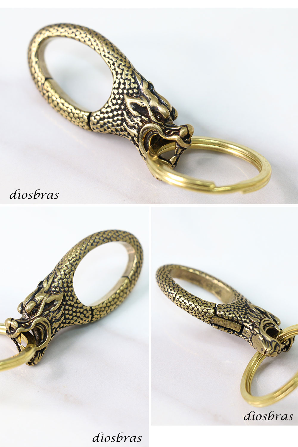 キーホルダー キーフック キーチェーン ゴールド ドラゴン 龍 竜 真鍮 ブラス キーホルダー