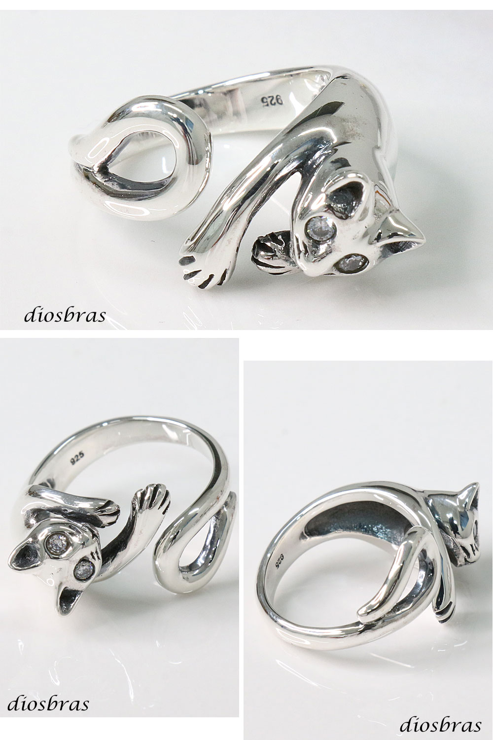 ネコ 巻き付き 猫 フリーサイズ リング ジルコニア シルバー925 シルバーリング メンズ レディース ホワイト シンプル スターリングシルバー ゴシック 指輪 ring silver925 銀 シルバーアクセサリー 男性 女性 レディース シンプル ピンキー