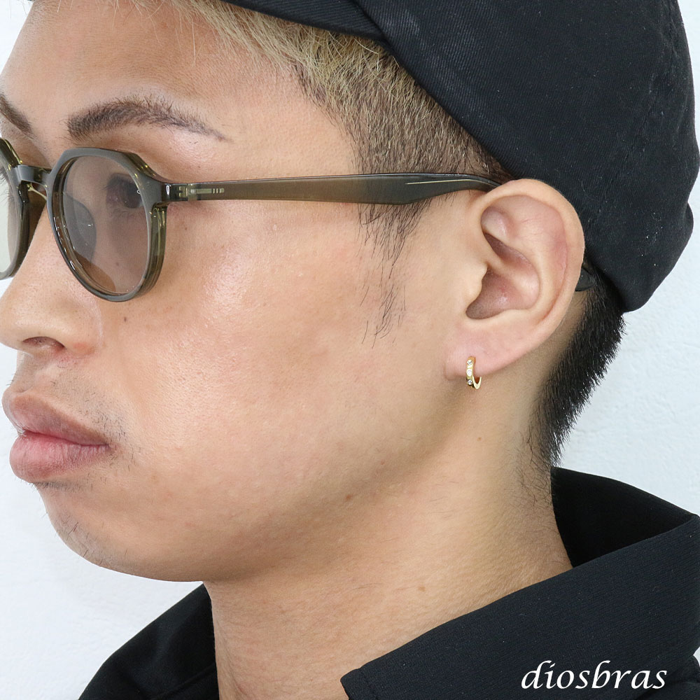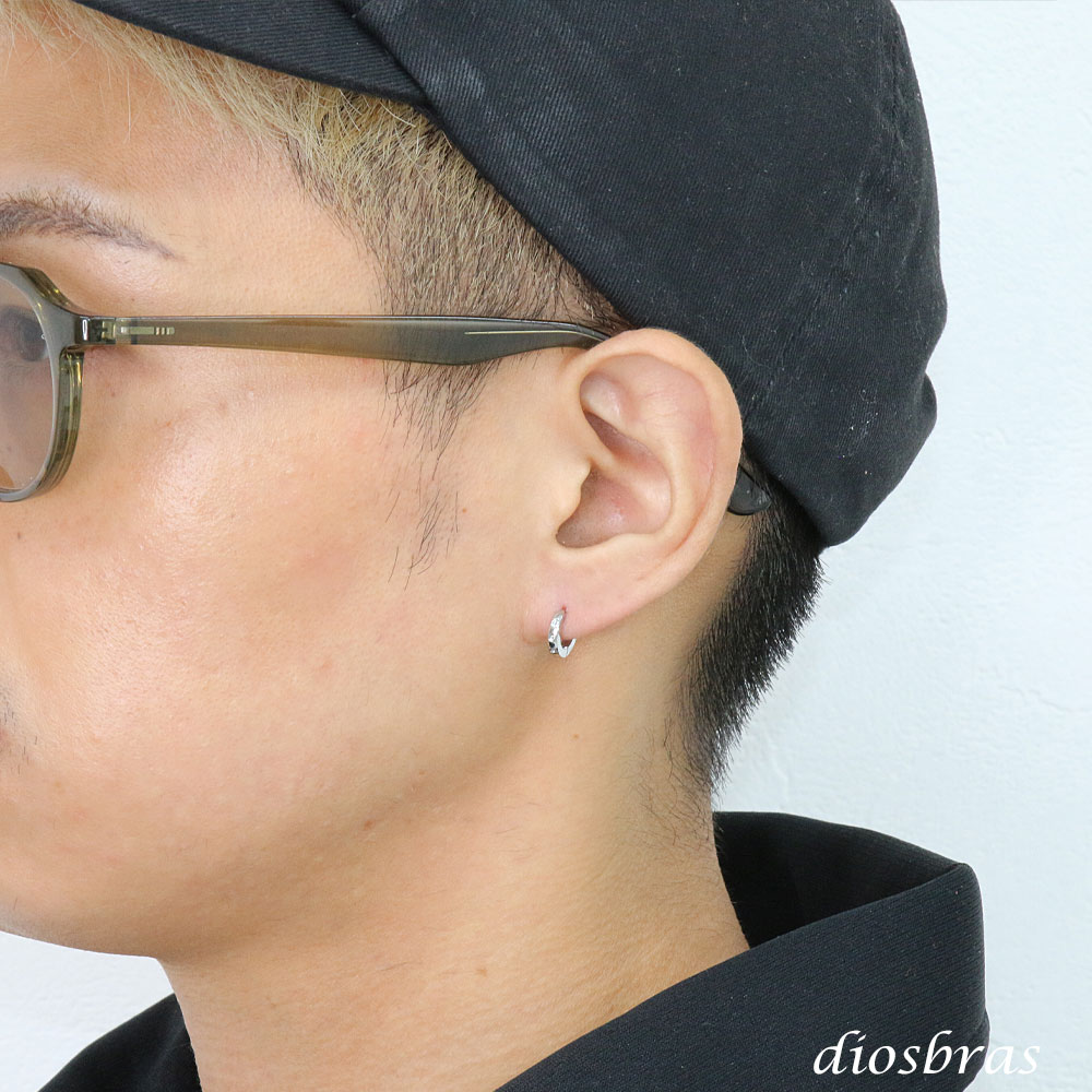フープピアスのセンター部分から中折れするワンタッチタイプのピアスなので、 ピアス初心者でも簡単に着脱出来るピアスです。