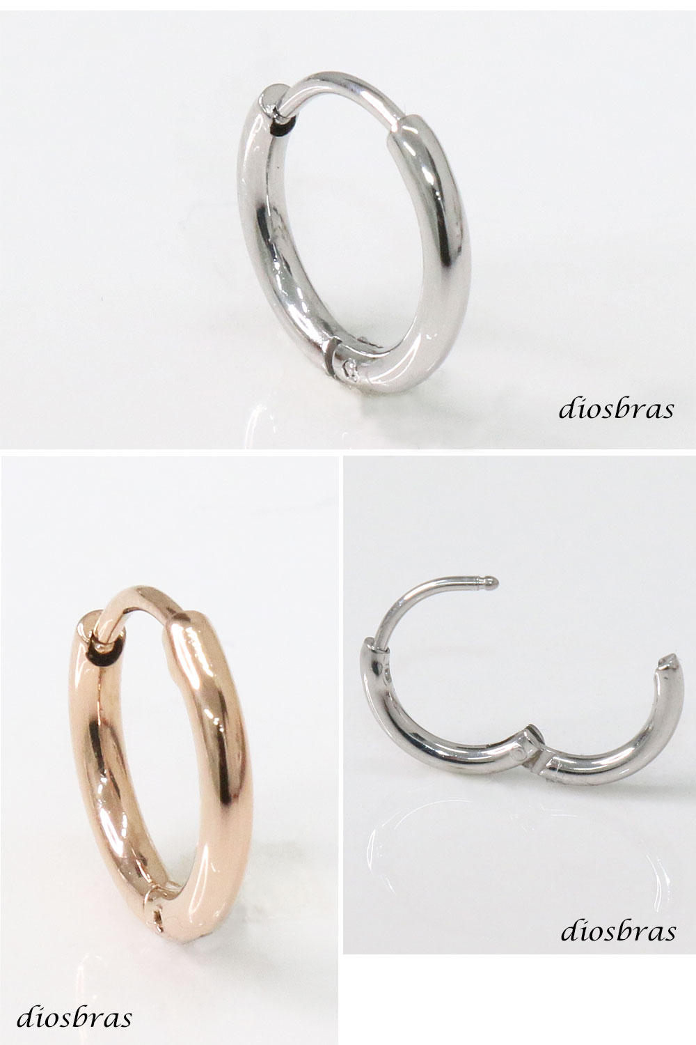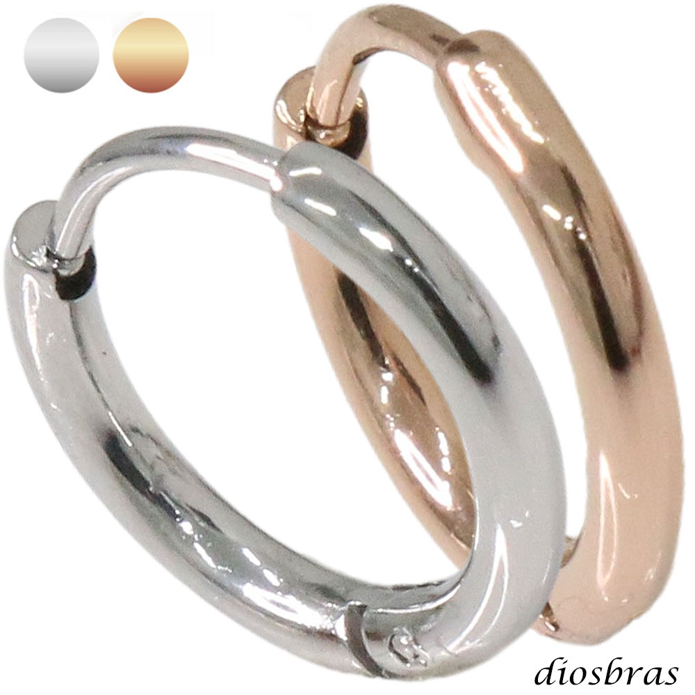 ステンレス フープピアス シルバー ローズゴールド 金属アレルギー対応 光沢 メタル素材 シンプル 小さめ フープ ループ リング 輪っか ピアス アクセサリー メンズ レディース 中折れ式 12mm メール便なら送料無料 [dios-pi453-gt]