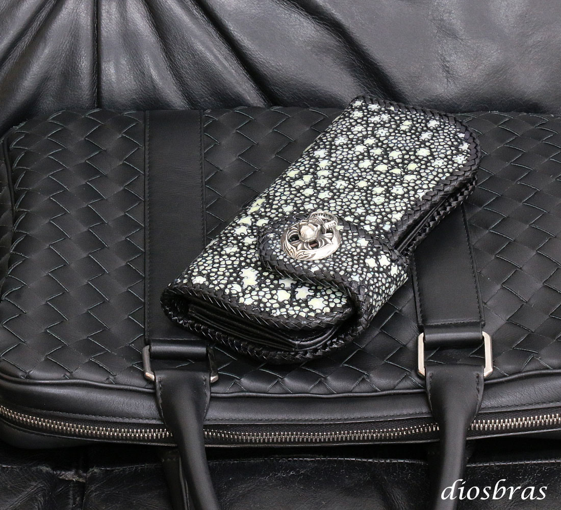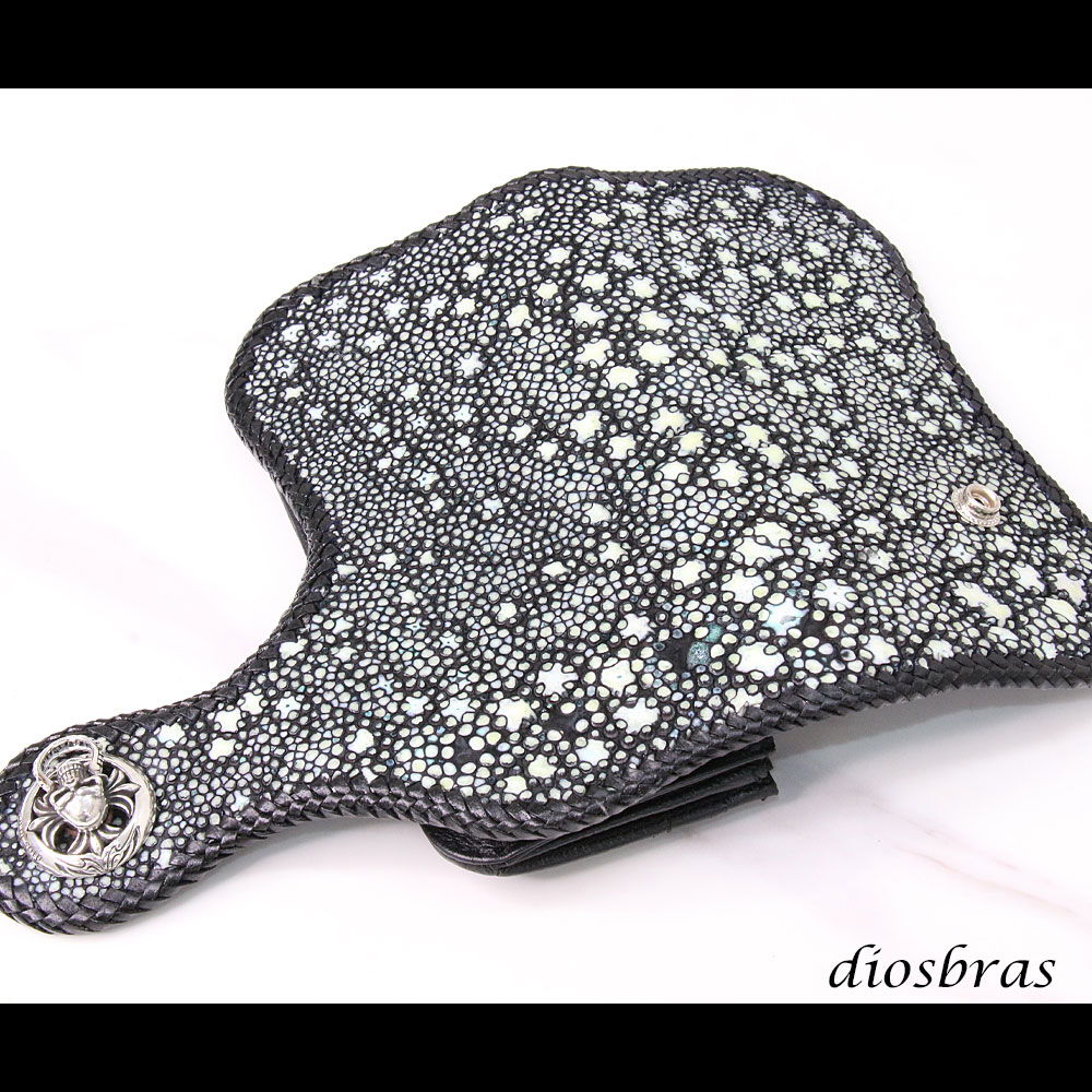 こちらは商品画像のままの模様の商品が届きますので安心してご注文ください。ポリッシングした表面が星のような模様からスターエイと呼ばれるレザーを使用した財布です。 流通量も非常に少ないうえに、1000匹に一匹獲れるかどうかという希少エイで まさにエイ革の王様と呼ばれるレザーです。、凹凸も異なり唯一無二の一点物の商品です。 クロコダイルなどとは比較にならない貴重なレザーを是非ご堪能ください。 内側にはソフトレザー(牛革)を使用しております。