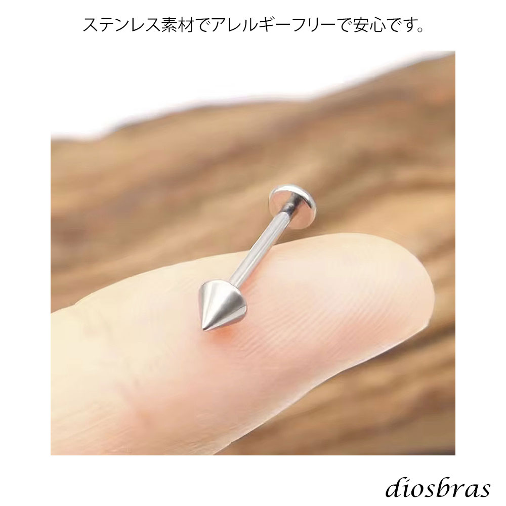 ストレート ラブレットスタッド コーンヘッド ボディーピアス ステンレス 16G 16ゲージ 鼻ピア ス 軟骨ピアス つけっぱなし ト ラガス 耳たぶ 舌ピ へそピアス インダストリアル