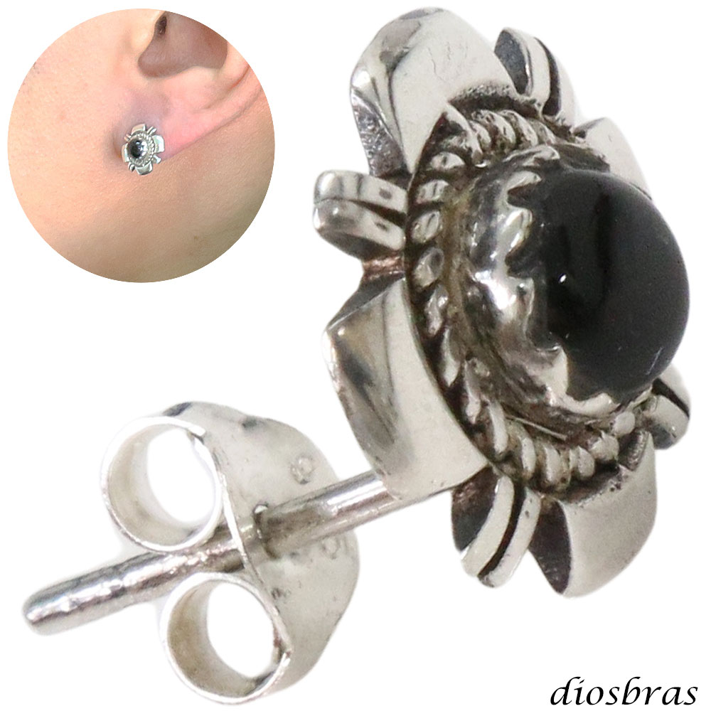 オニキス ピアス 本物シルバー925 ピアス 片方 パワーストーン ピアス片耳 片方販売ピアス メンズ レディース インディアンジュエリー ナバホ [dios-pi456]