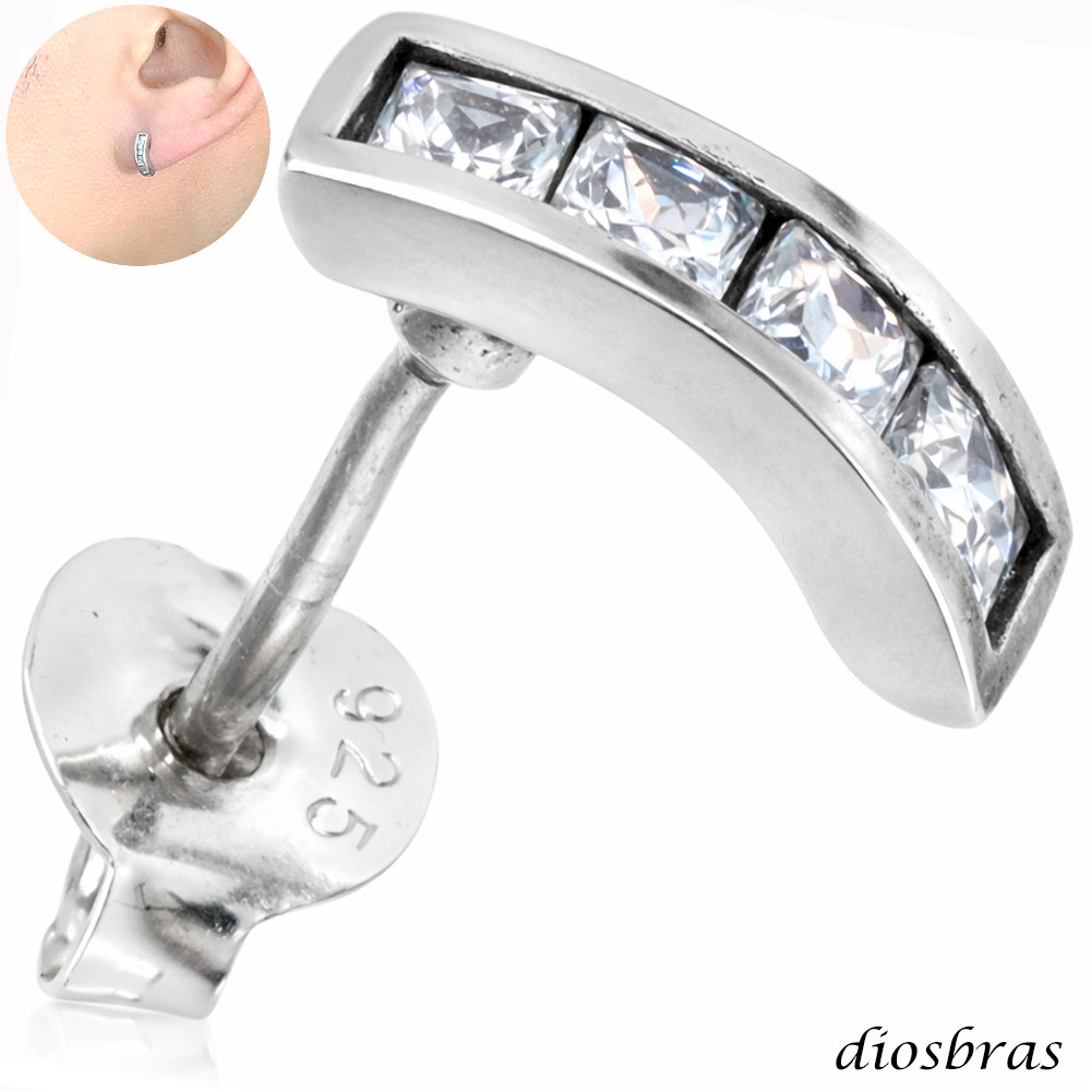 ジルコニア ハーフリング シルバー925 ピアス メンズ レディース ワンポイント イヤリング アクセサリー フープ ライン 本物シルバー925 片方ピアス メンズ レディース 中 [dios-pi472-gt]