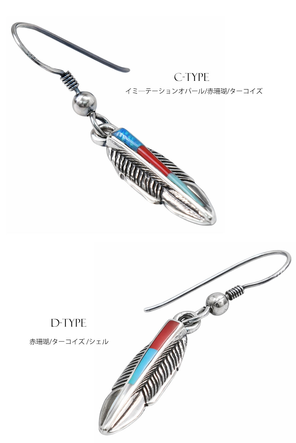 メンズピアス シルバーアクセサリー シルバー925 ピアス バラ売り 片耳のみ ターコイズ イミテーション オパール 赤珊瑚 パウアシェル シェル イーグル ドロップピアス