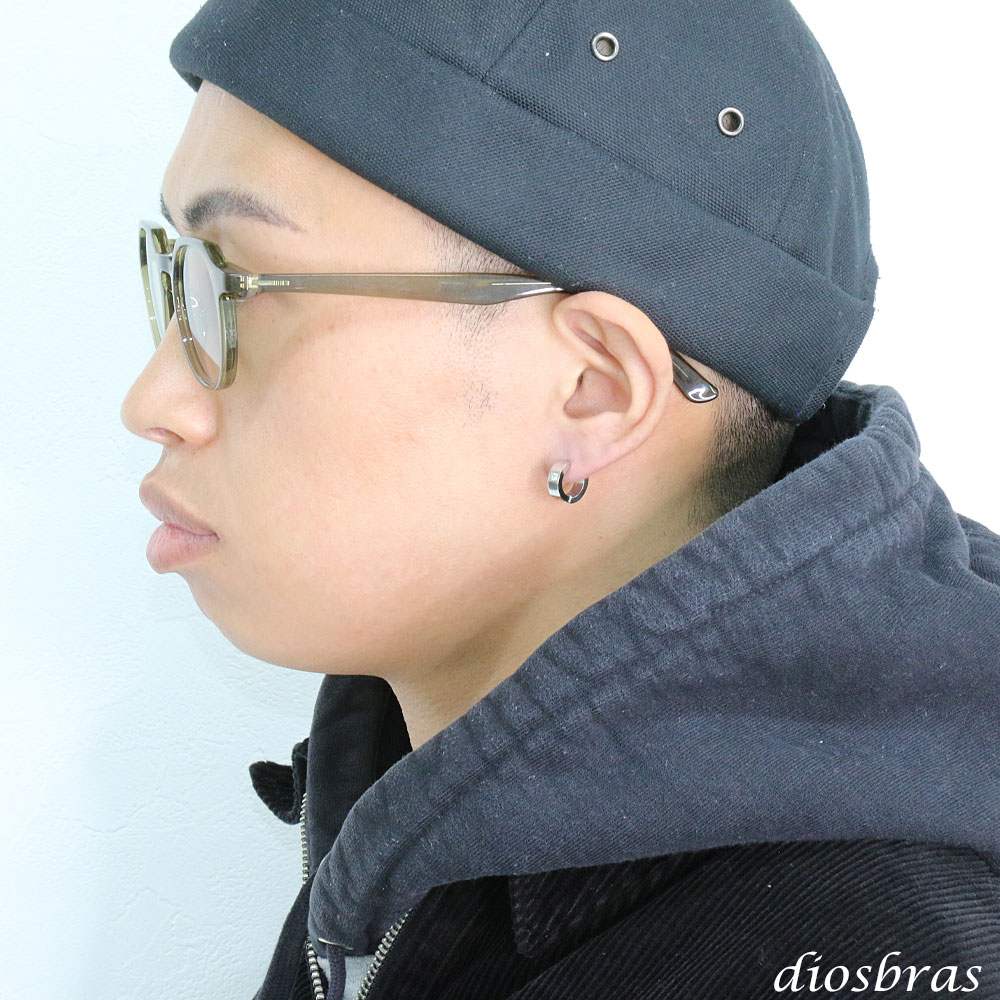 ステンレス フープピアス ジルコニア シルバー 金属アレルギー対応 メタル素材 シンプル 小さめ フープ ループ リング 輪っか ピアス アクセサリー メンズ レディース 中折れ式 13mm [dios-pi487-gt]