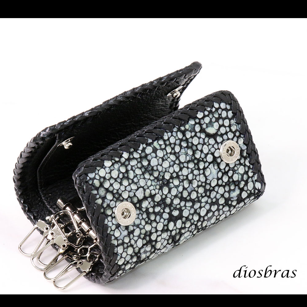 キーケース 6連 ガルーシャ スティングレイ メンズ レディース 本革 スティングレー スター エイ革 梅花皮 かいらぎ イバラエイ スタースティングレー バイカー 牛革 ハンドメイド 三つ折り財布 財布 レザーウォレット ウォレット バイカー ハーフウォレット [KW-1-SCST6]