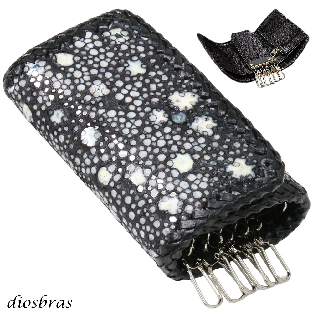 キーケース 6連 ガルーシャ スティングレイ メンズ レディース 本革 スティングレー スター エイ革 梅花皮 かいらぎ イバラエイ スタースティングレー バイカー 牛革 ハンドメイド 三つ折り財布 財布 レザーウォレット ウォレット バイカー ハーフウォレット [KW-1-SCST7]