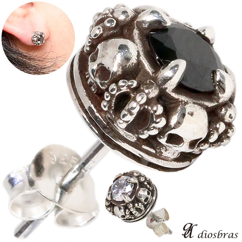 スカル ジルコニア 王冠 クラウン シルバー925 ピアス アクセサリー 本物シルバー925◇スカルヘッド ◇片方ピアス メンズ レディース [dios-pi349-ng]