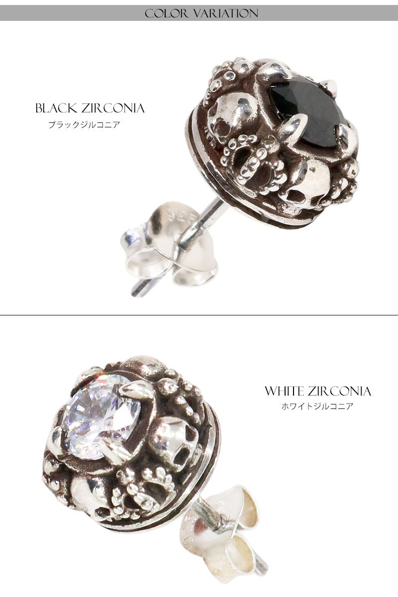 スカル ジルコニア 王冠 クラウン シルバー925 ピアス アクセサリー 本物シルバー925◇スカルヘッド ◇片方ピアス メンズ レディース