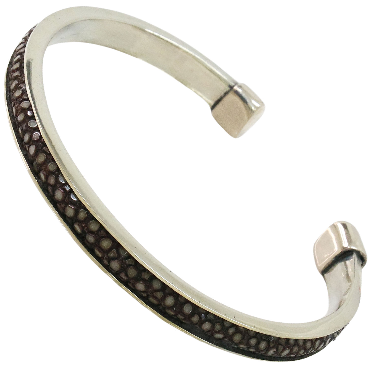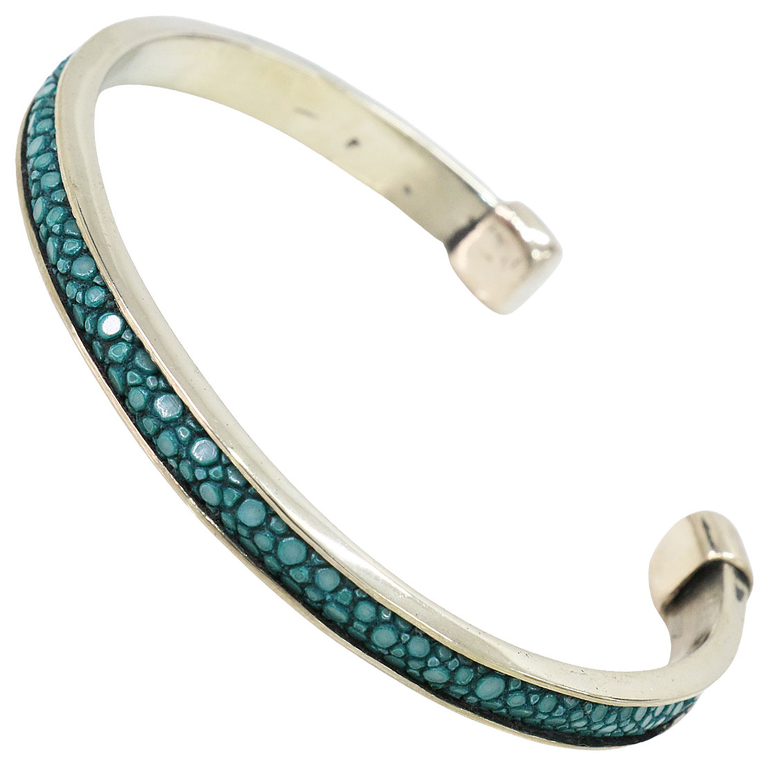 バングル シルバーアクセサリー ガルーシャ 鏡面 スティングレイ エイ革 スティングレー シンプルデザイン ブルー ブラック メンズ シルバーバングル ブレスレット メンズアクセサリー プレゼントに人気 送料無料 [BGB-227-BH]