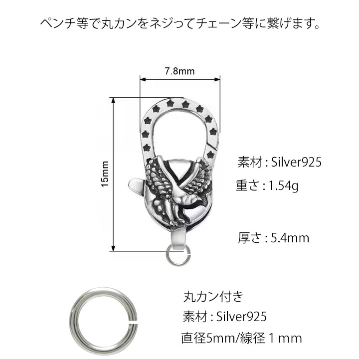 チェーン フック シルバー925 イーグル フェザー ネイティブアメリカン 羽根 スター 星 カスタムパーツ ロブスター クラスプ ロック 両面デザイン