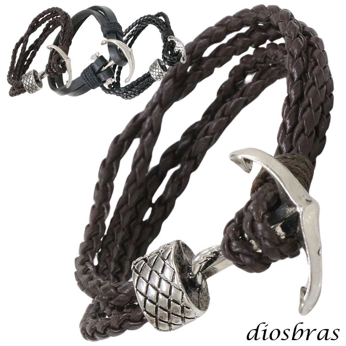 ブレスレット メンズ レザー ブレス 十字架 アンカー クロス プレート インフィニティ 無限 選べる♪全4種類 本革 革 バングル レザーブレスレット レザーブレス アメカジ系 サロン系 キレカジ系 に♪ ピューター製 メール便なら送料無料