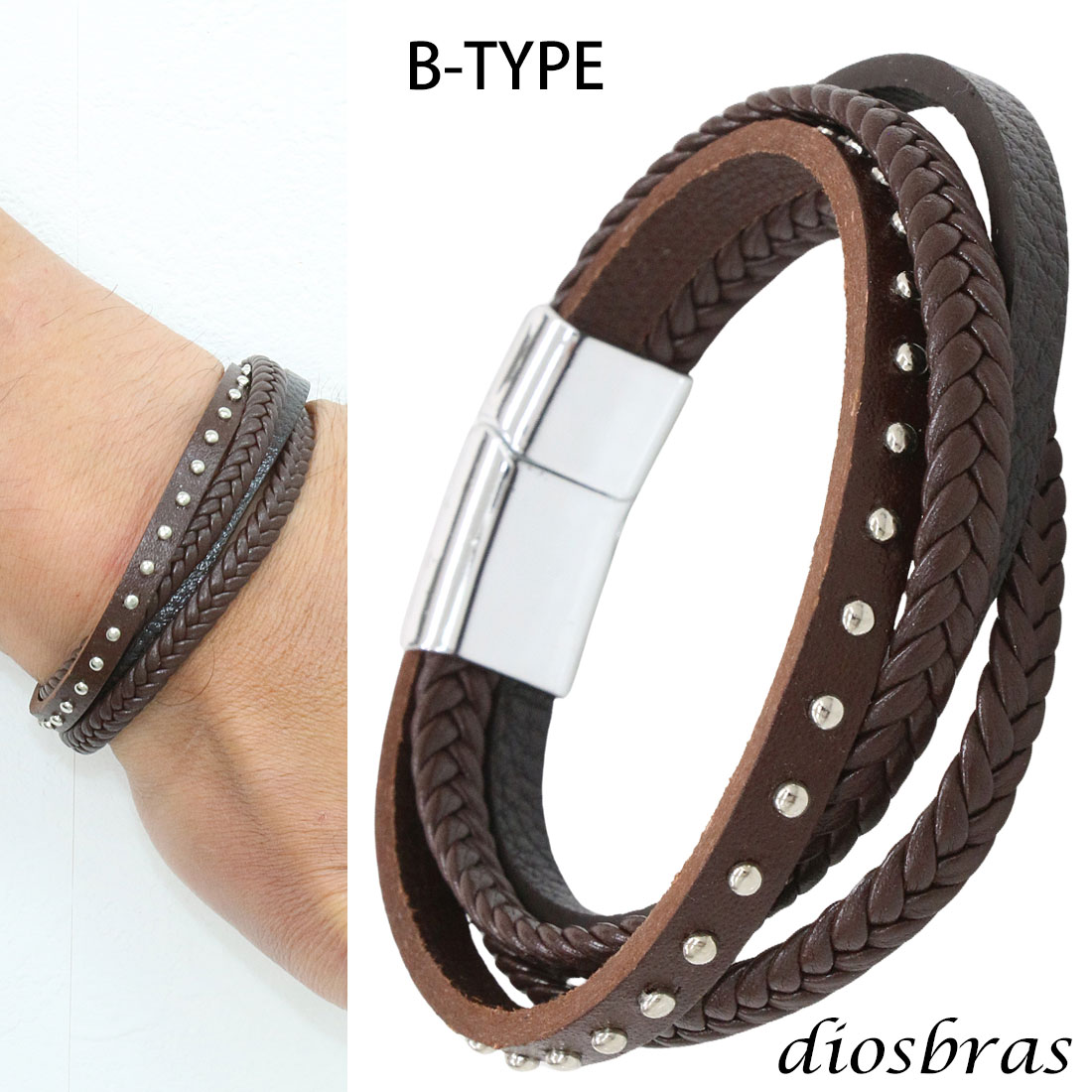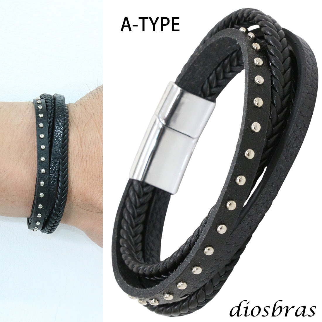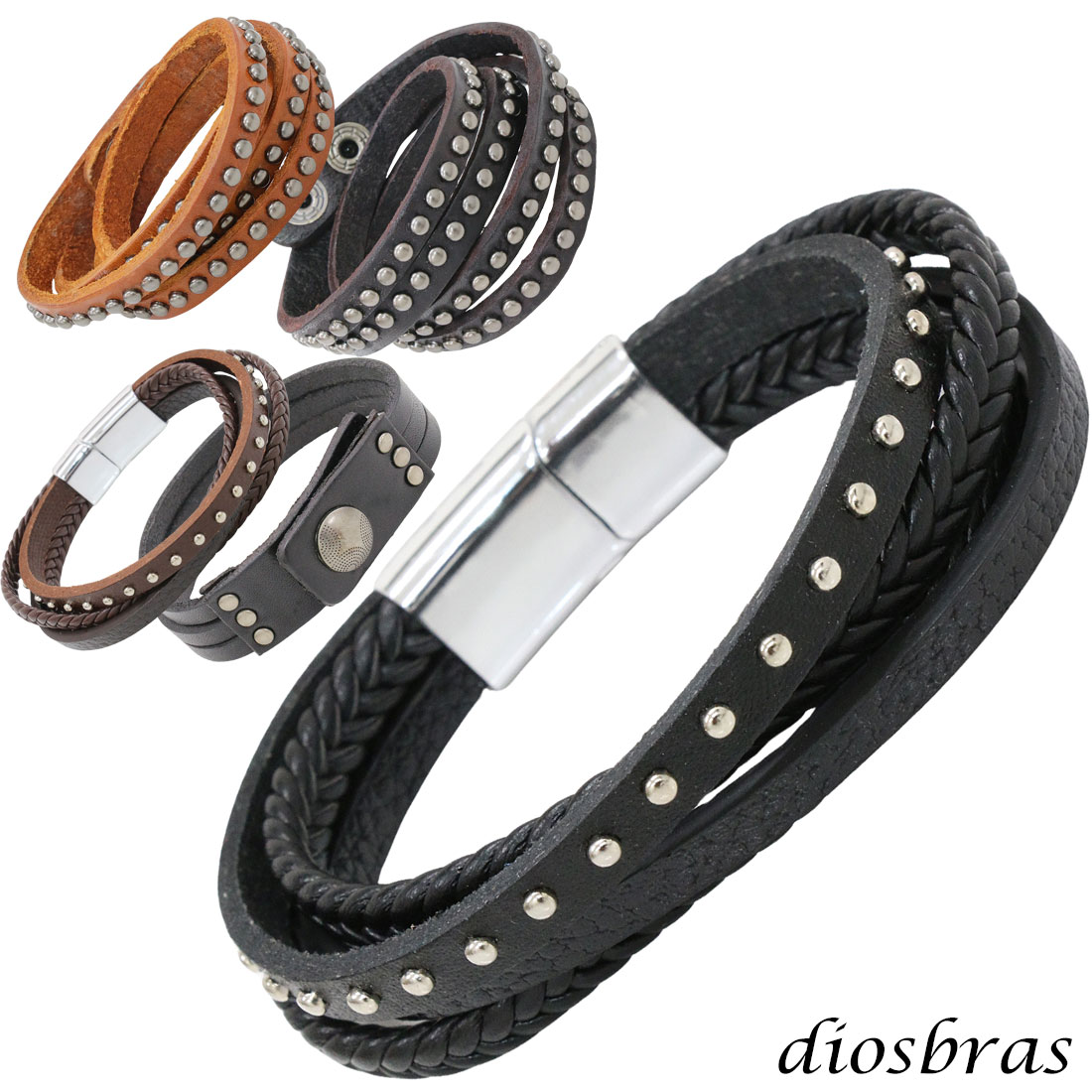 ブレスレット メンズ レザー ブレス スタッズ 3重 2重 2連ブレス クロス プレート インフィニティ 無限 選べる♪全5種類 本革 革 バングル レザーブレスレット レザーブレス アメカジ系 サロン系 キレカジ系 に♪ ピューター製 メール便なら送料無料