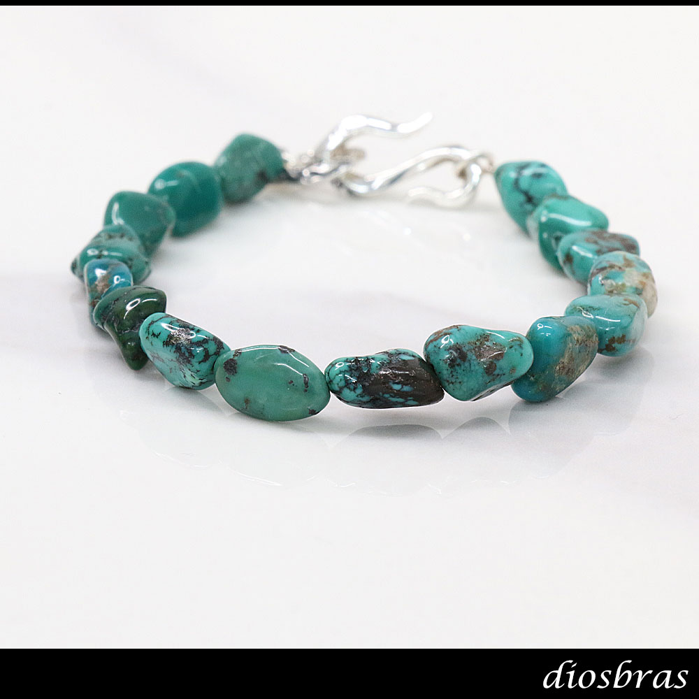 グリーン ターコイズ さざれ 馬蹄 ホースシュー フェザー ブレスレット ブレス メンズ ネイティブ 羽 ターコイズ オニキス シルバー925 チェーン さざれ石 メディスンホイール フェザー [dios-st53-mana]