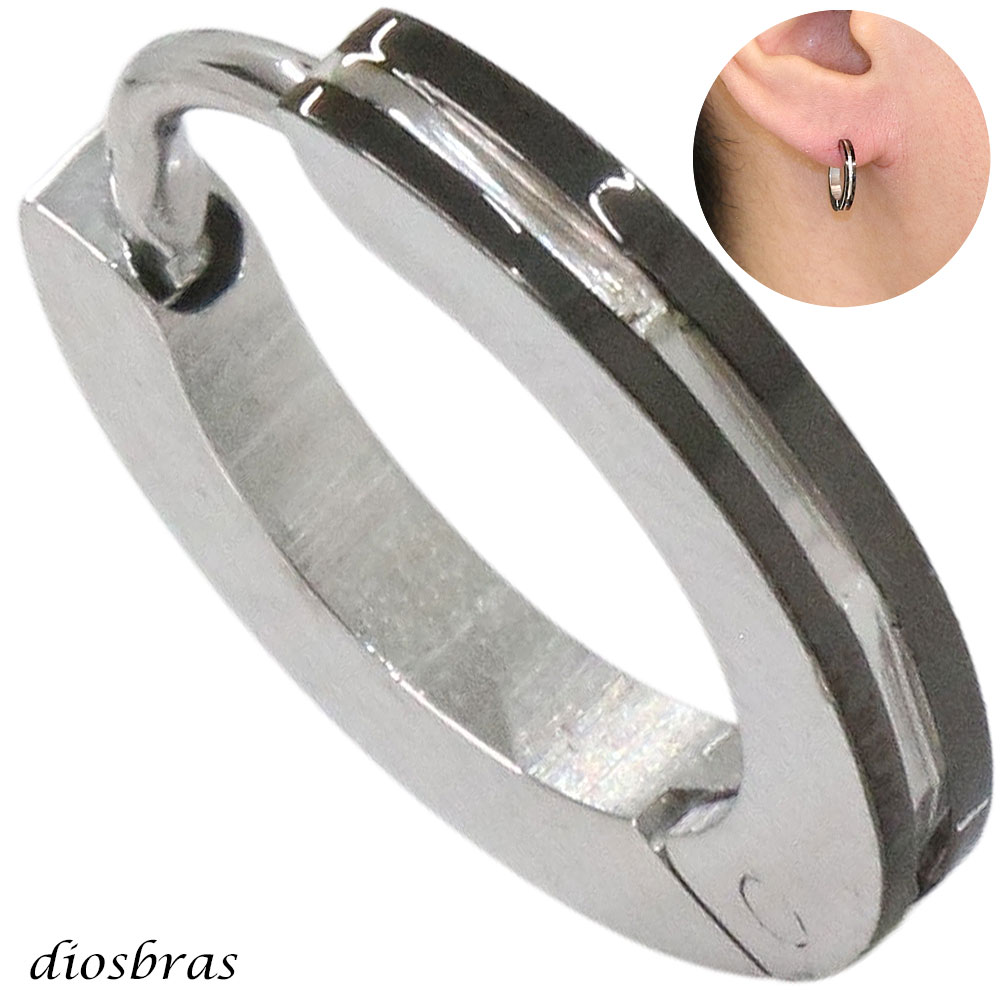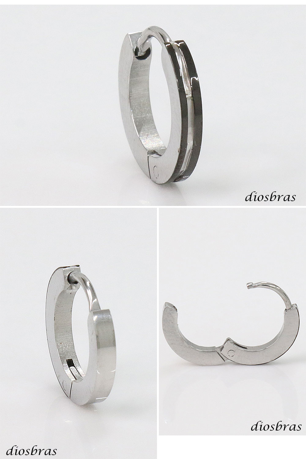 ステンレス フープピアス ブラック加工 シルバー 金属アレルギー対応 メタル素材 シンプル 小さめ フープ ループ リング 輪っか ピアス メンズ アクセサリー レディース 中折れ式 13mm [dios-pi430-gt]