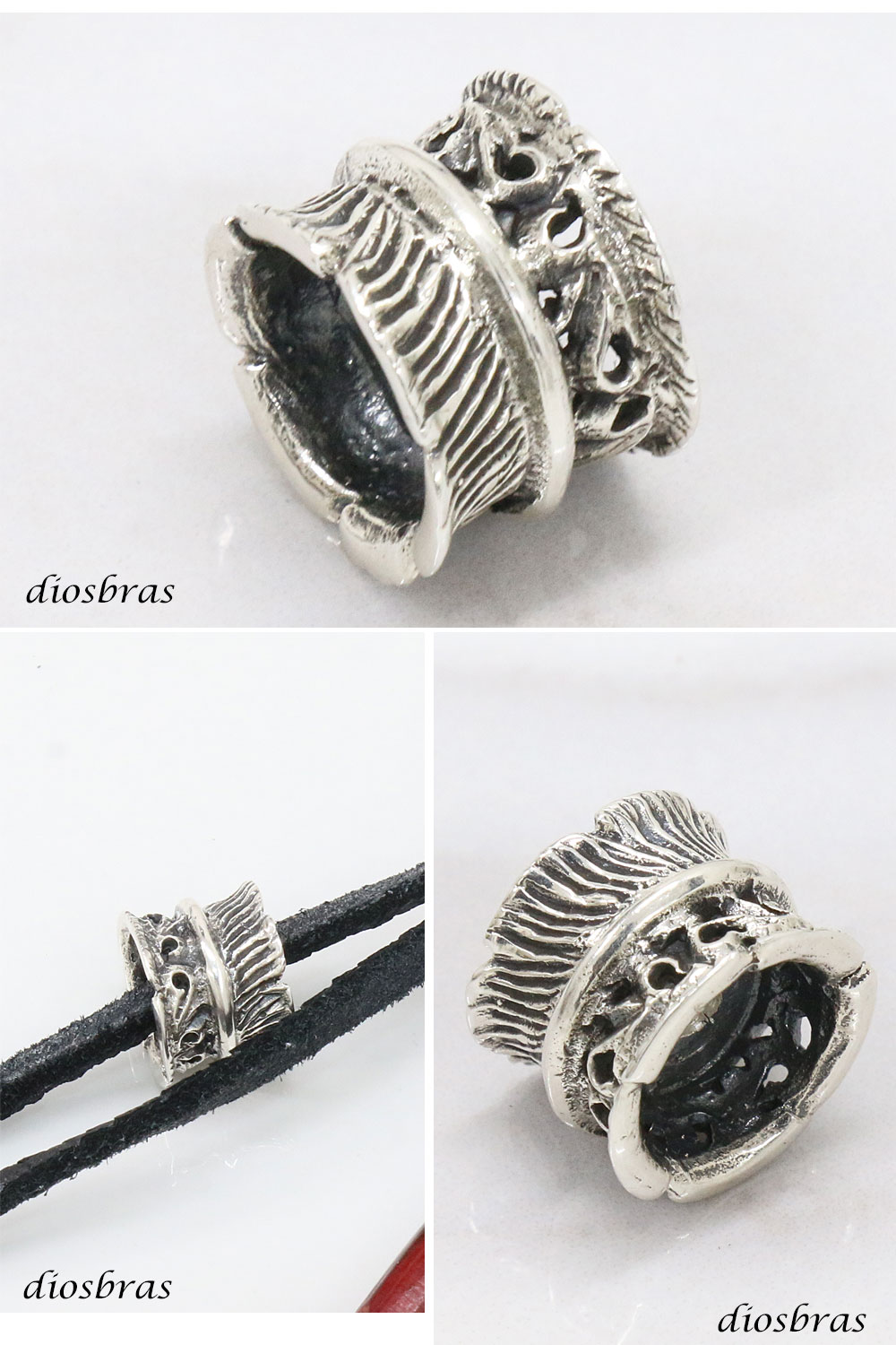 フェザー アラベスク ビーズ シルバー シルバー925 ビーズ アクセサリー ハンドメイド パーツ イーグル 羽根 フェザー アラベスク トライバル 唐草 縦9.5mm 直径12.5mm 穴径3mm メール便全国送料無料 [dios-pt21-pb]