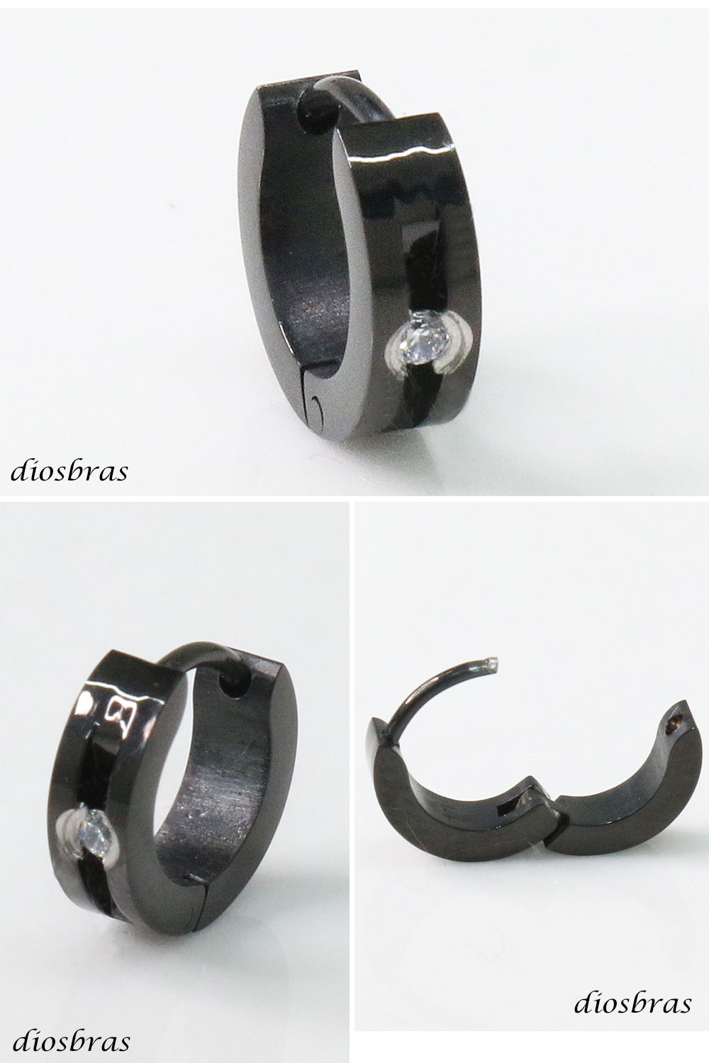 ステンレス フープピアス ジルコニア ブラック 金属アレルギー対応 メタル素材 シンプル 小さめ フープ 輪っか ピアス アクセサリー メンズ レディース 中折れ式 メール便なら送料無料 10mm [dios-pi436-gt]