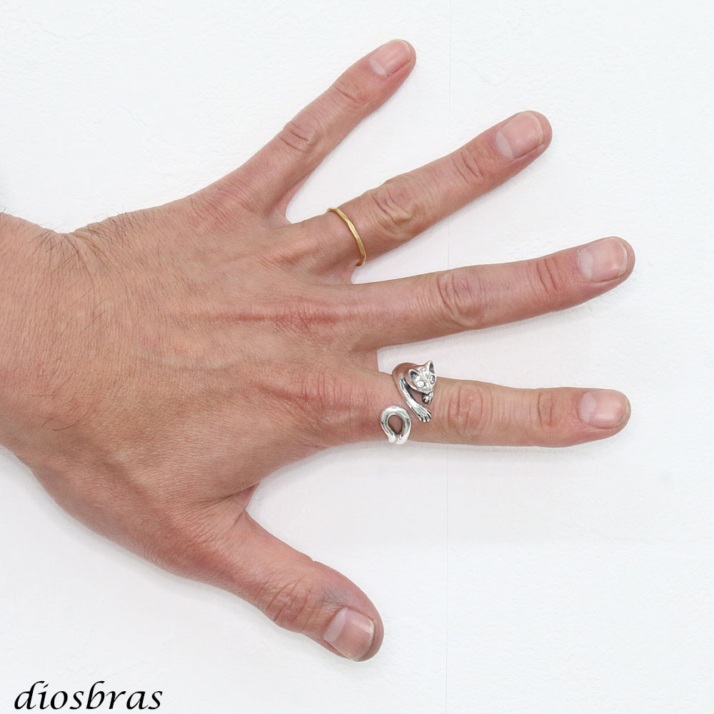 ネコ 巻き付き 猫 フリーサイズ リング ジルコニア シルバー925 シルバーリング メンズ レディース ホワイト シンプル スターリングシルバー ゴシック 指輪 ring silver925 銀 シルバーアクセサリー 男性 女性 レディース シンプル ピンキー [RG-273-DA]